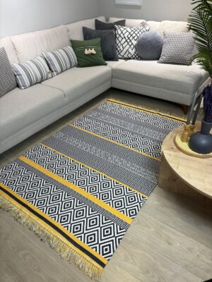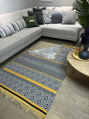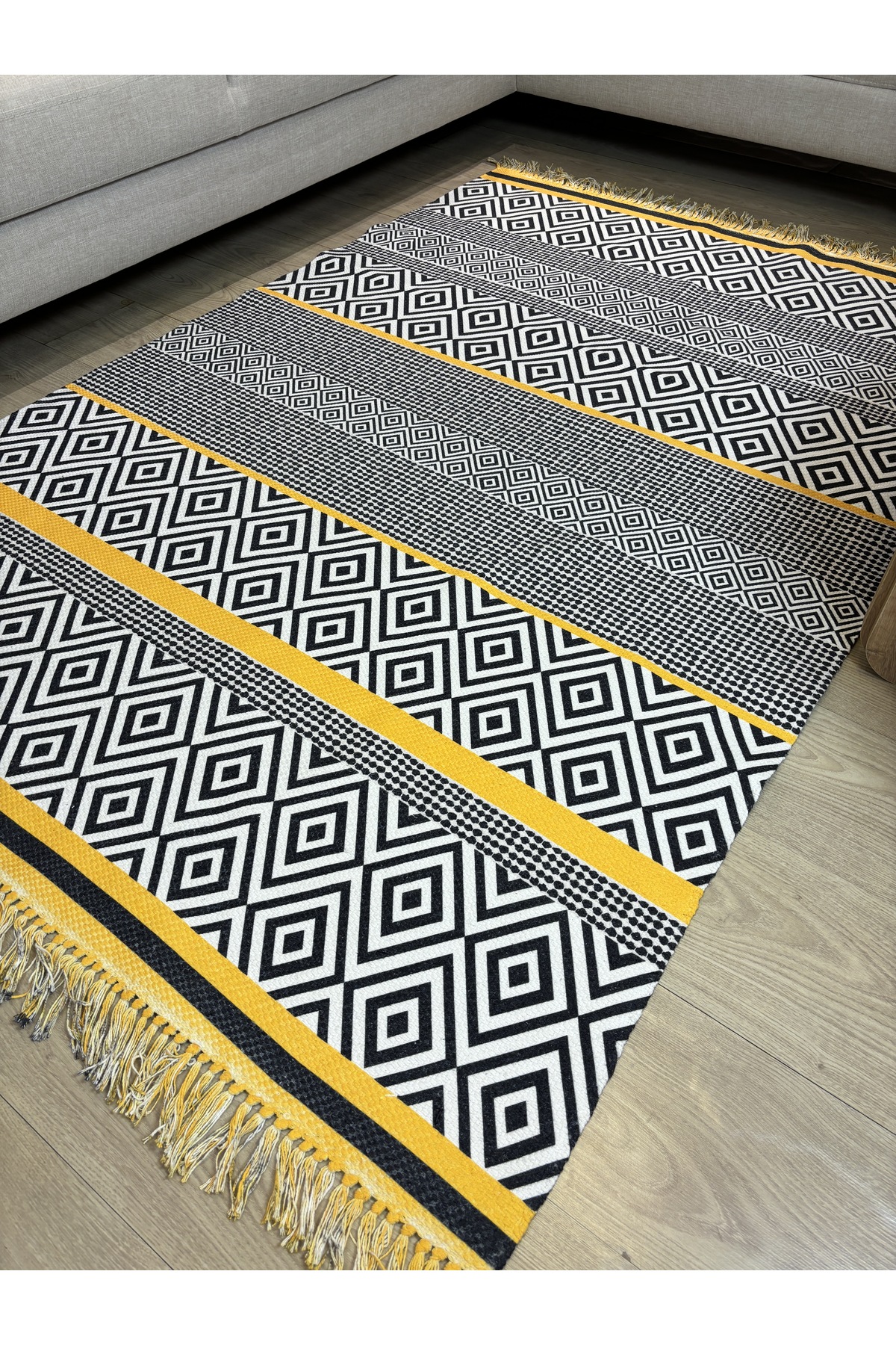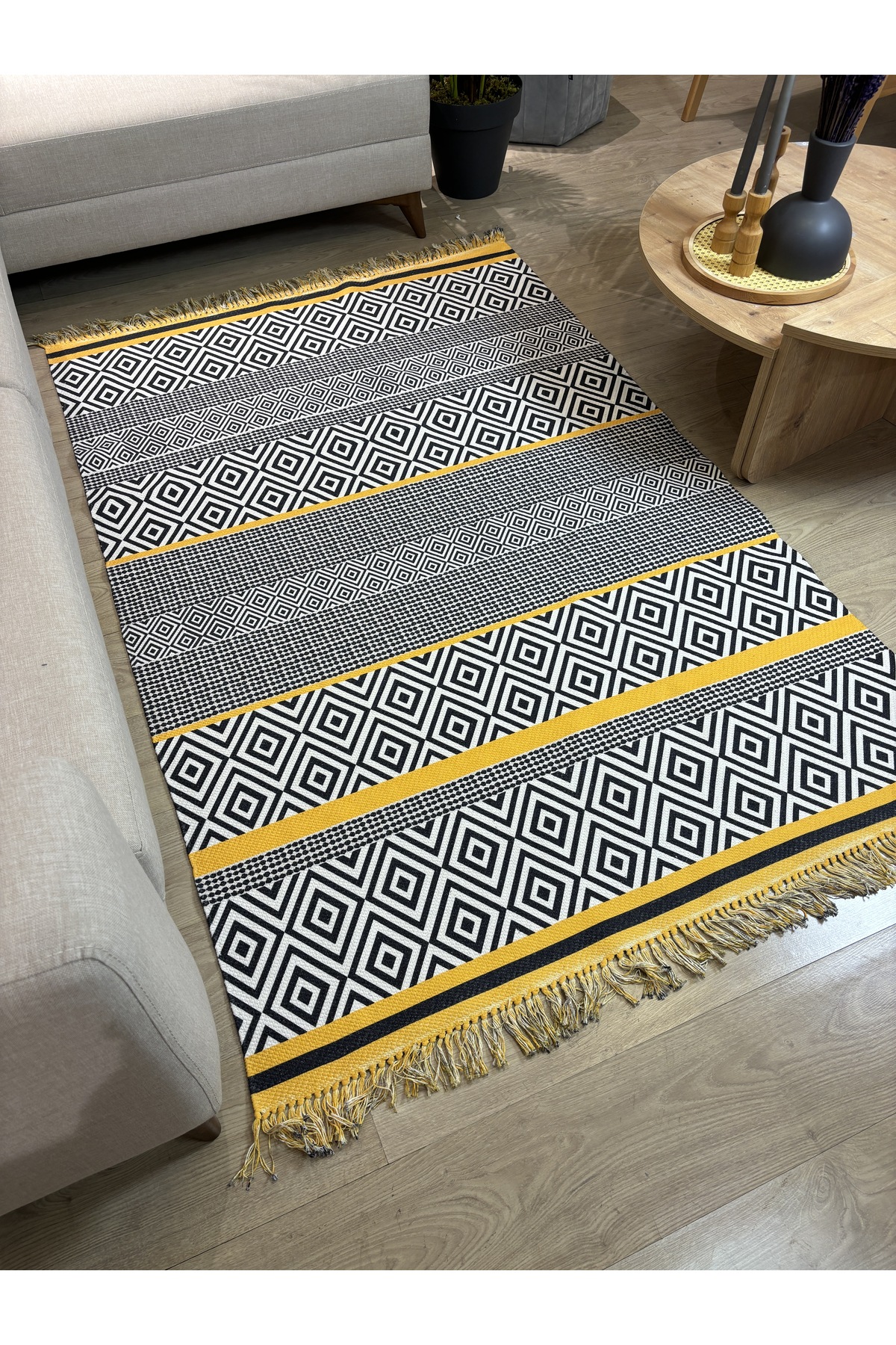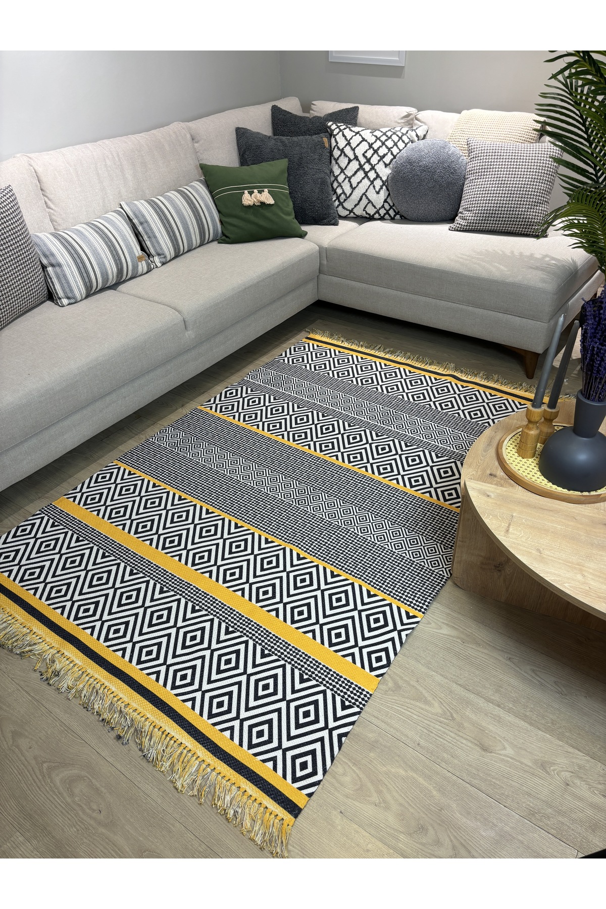 İskandinav Dokuma Taban Çift Taraf Baskılı Etnik Desenli Yıkanabilir Kilim