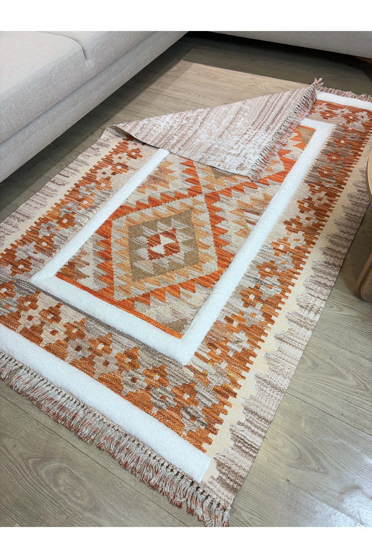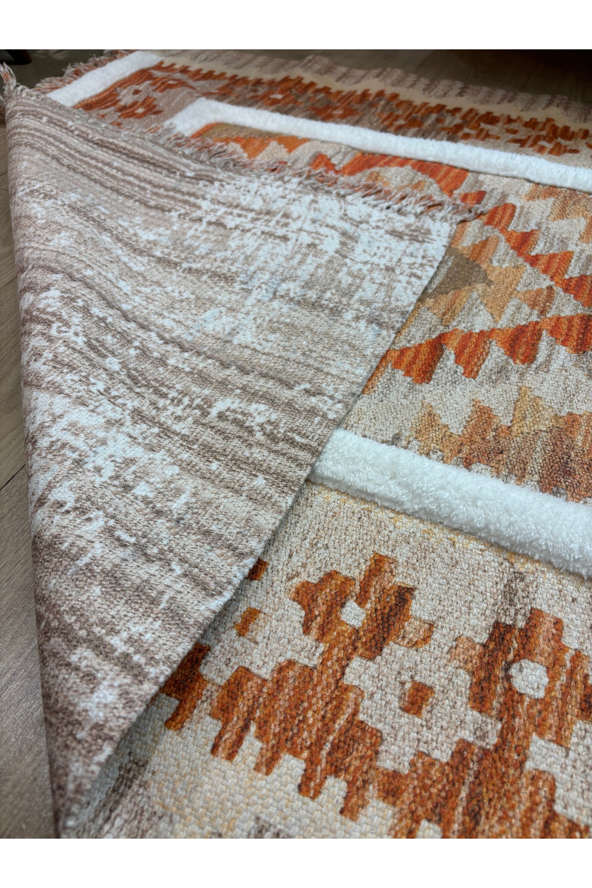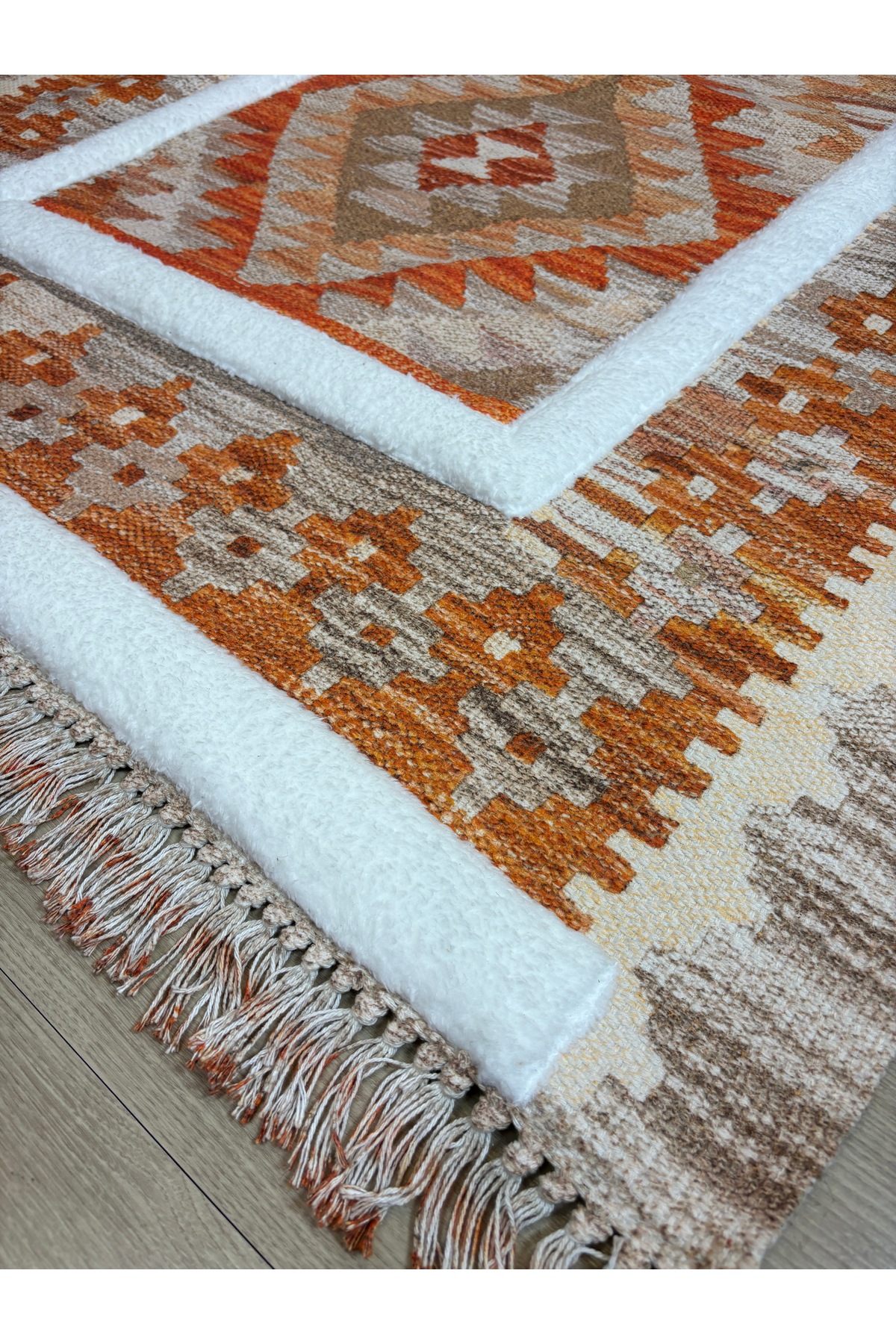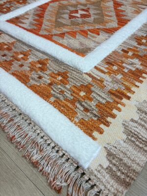 İskandinav Dokuma Taban Çift Taraf Baskılı Taft Dikmeli Etnik Desenli Yıkanabilir Kilim