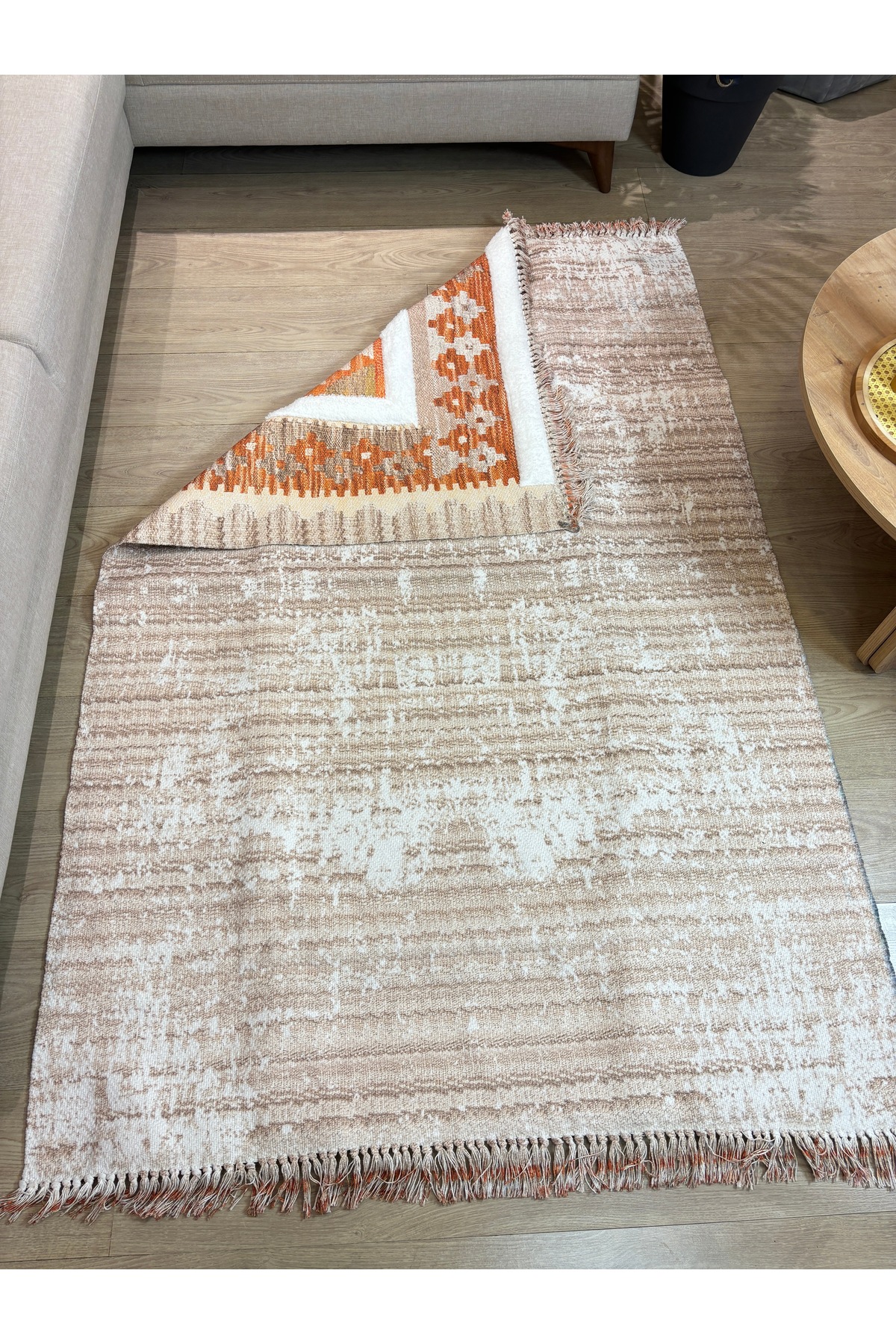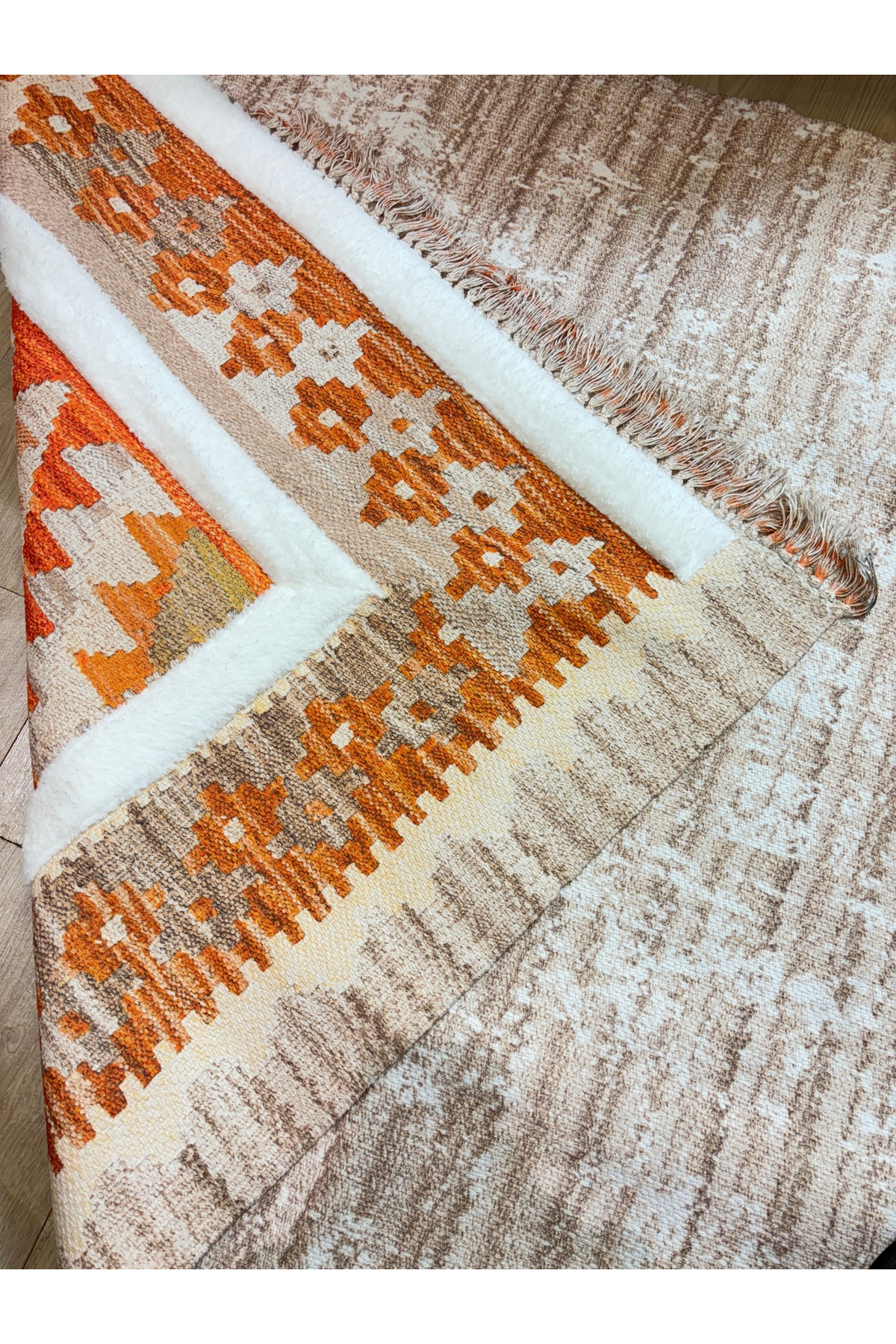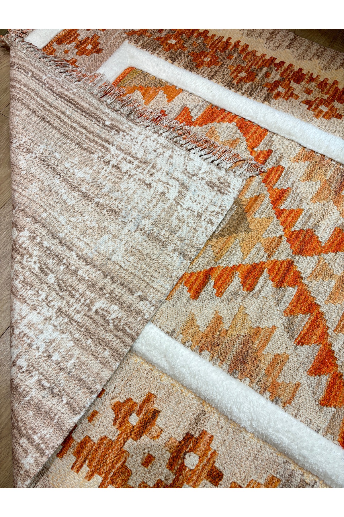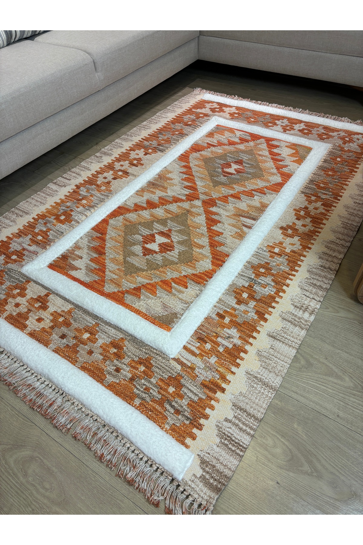 İskandinav Dokuma Taban Çift Taraf Baskılı Taft Dikmeli Etnik Desenli Yıkanabilir Kilim