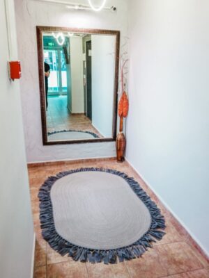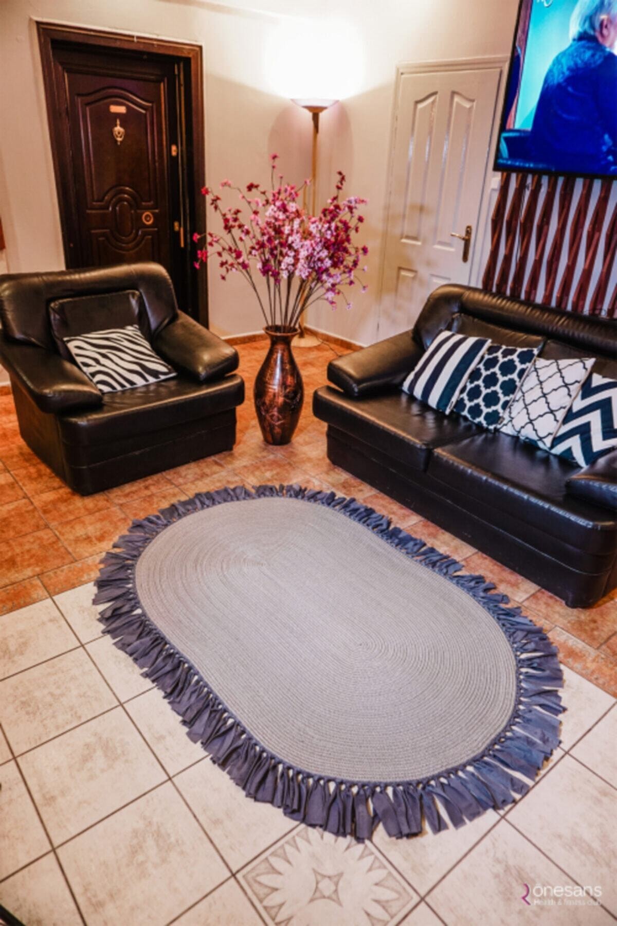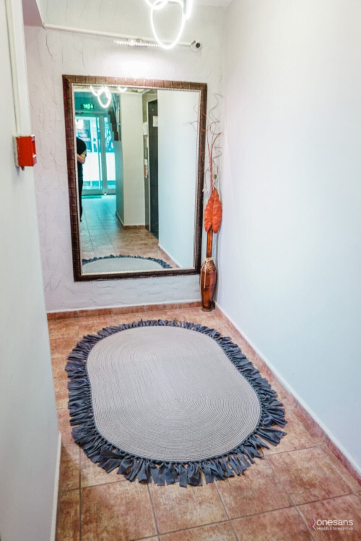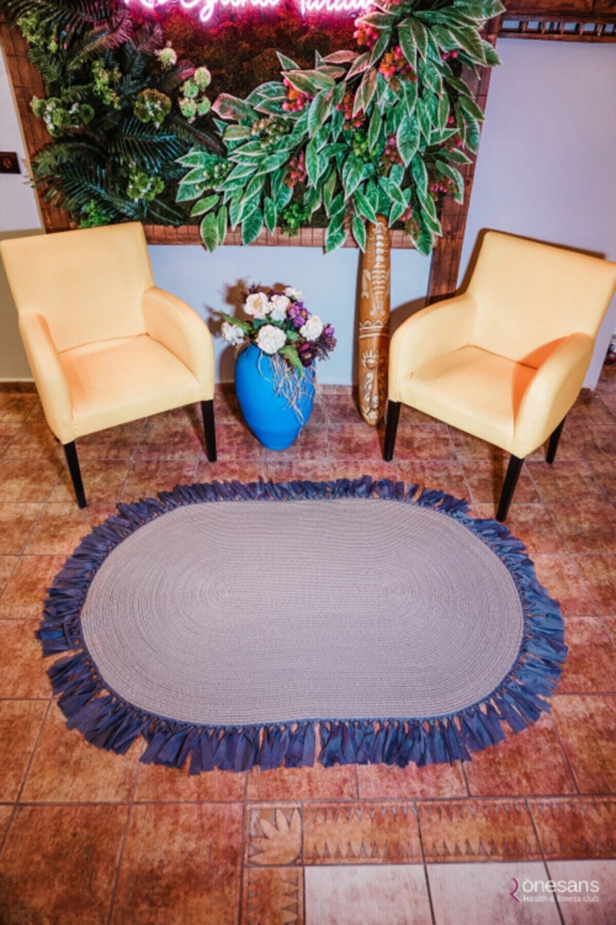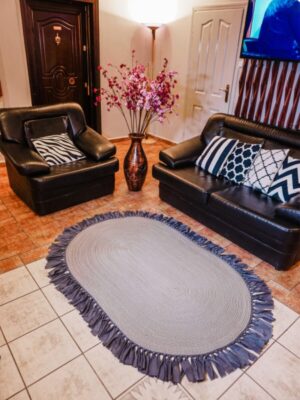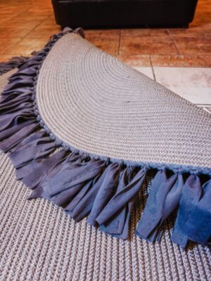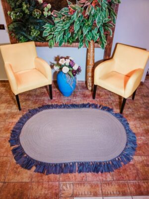 Jüt Dekoratif Hasırlı El Örgüsü Kilim Halı Paspas Hasır Oval Saçaklı El Dokuması – Gri