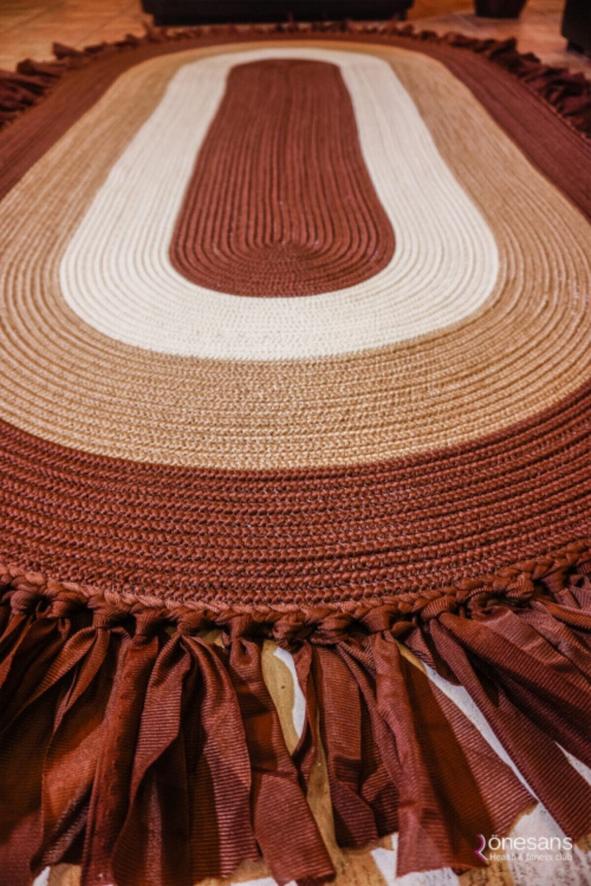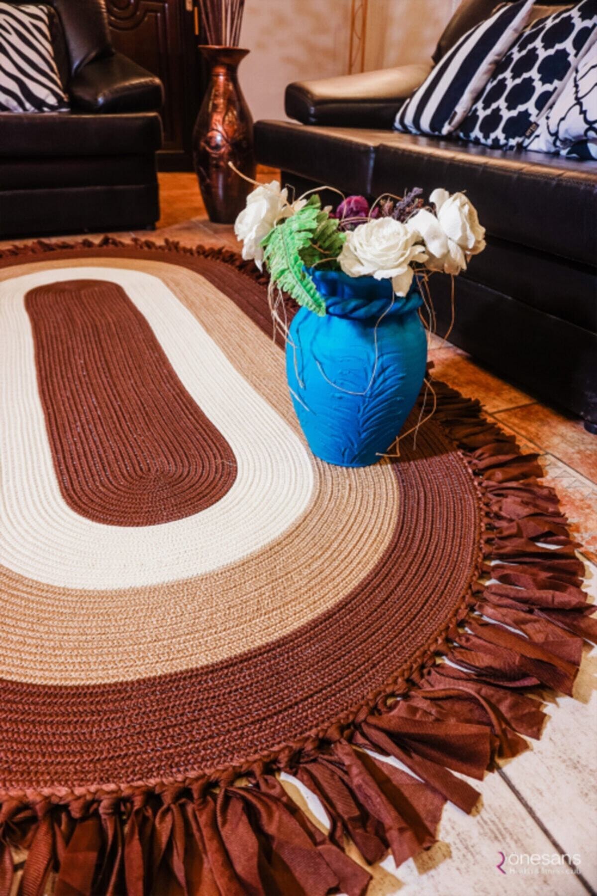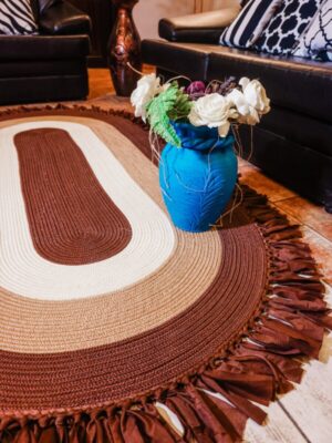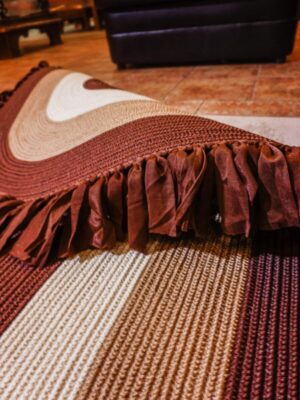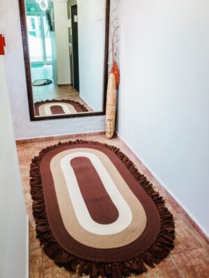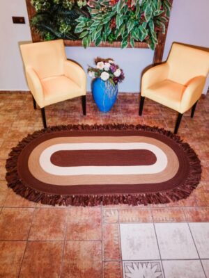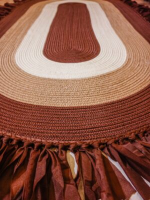 Jüt Dekoratif Hasırlı El Örgüsü Kilim Halı Paspas Hasır Oval Saçaklı El Dokuması – Kahverengi Bej