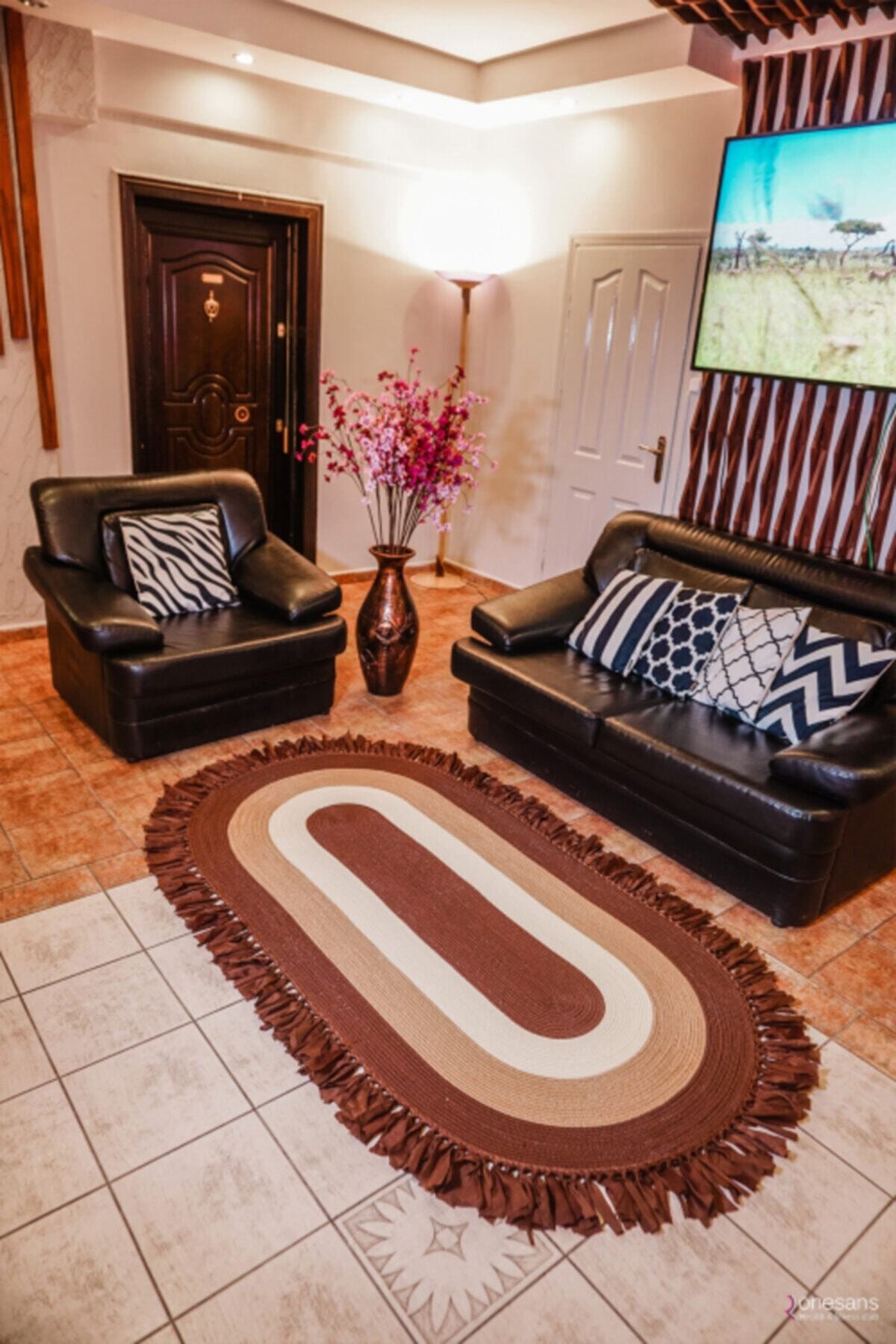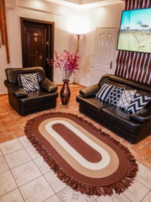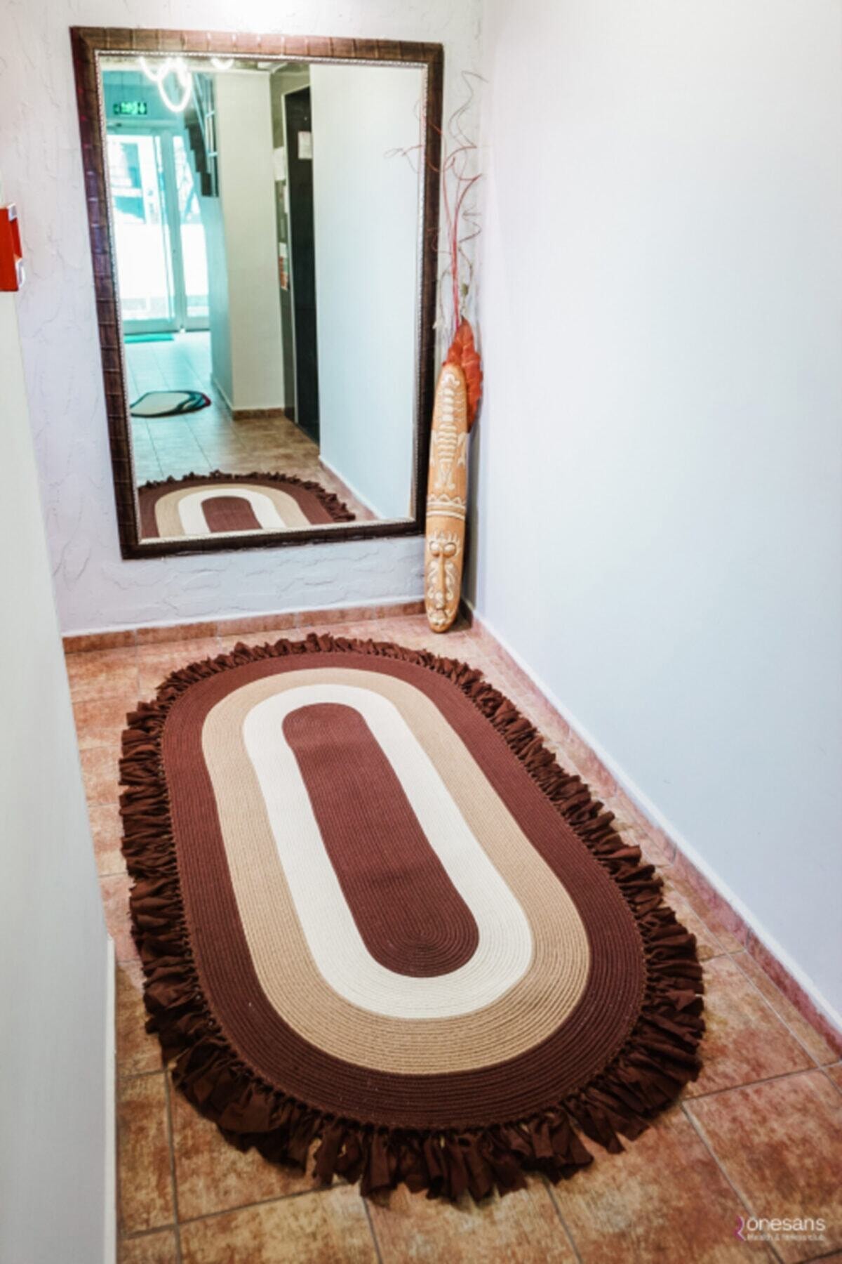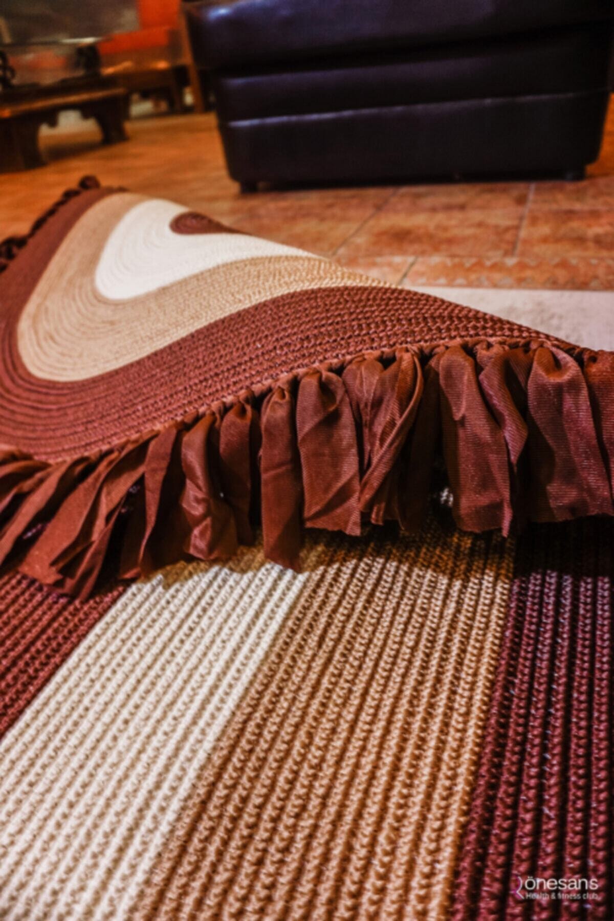 Jüt Dekoratif Hasırlı El Örgüsü Kilim Halı Paspas Hasır Oval Saçaklı El Dokuması – Kahverengi Bej