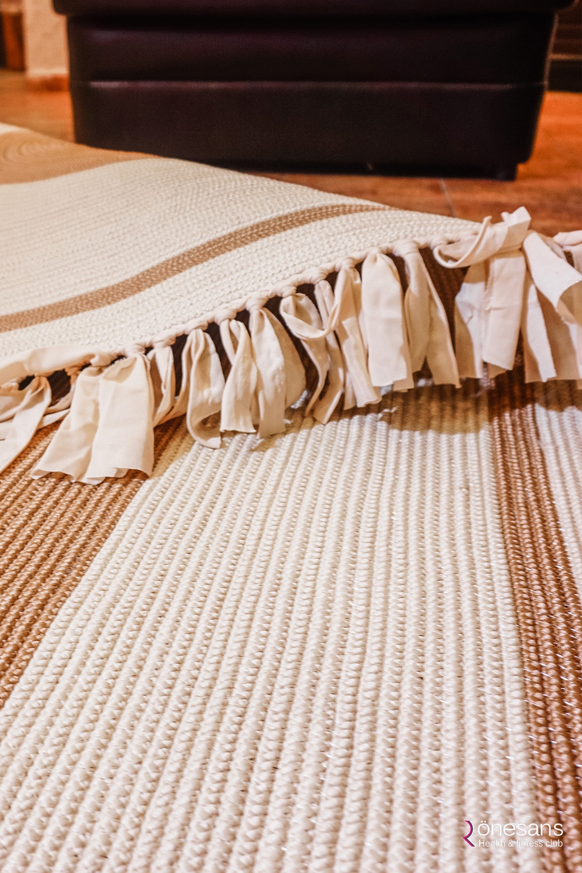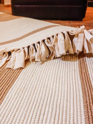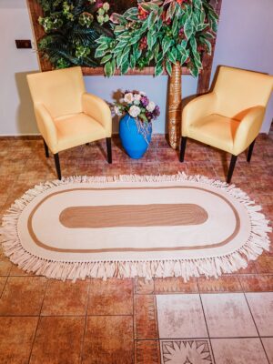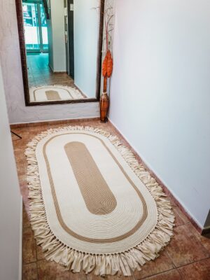 Jüt Dekoratif Hasırlı El Örgüsü Kilim Halı Paspas Hasır Oval Saçaklı El Dokuması – Krem