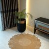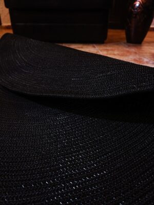 Jüt Dekoratif Hasırlı El Örgüsü Kilim Halı Paspas Hasır Yuvarlak El Dokuması Siyah Yuvarlak