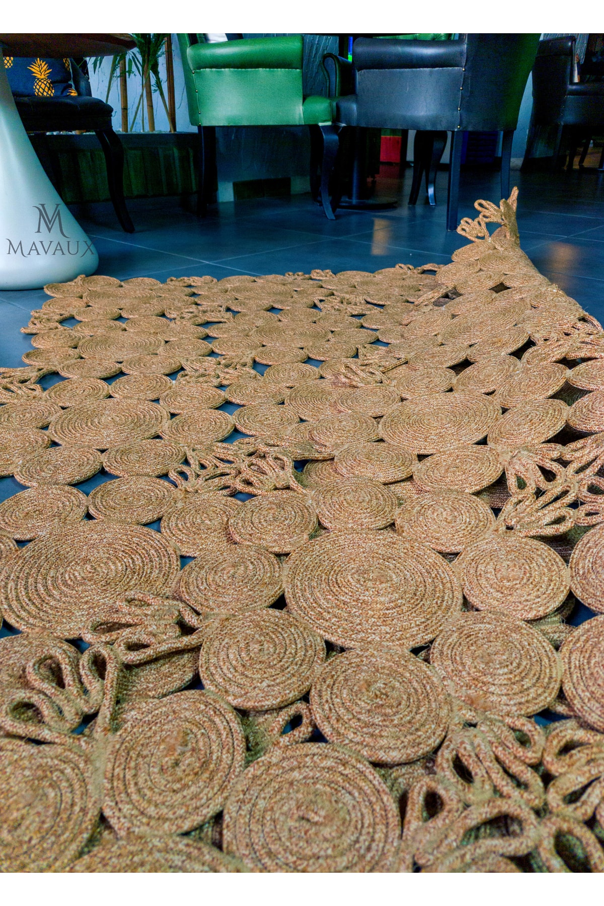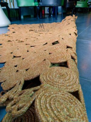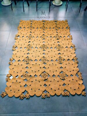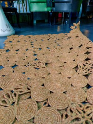 Doğal jüt liflerinden el tezgâhında üretilmiş Jüt halı hemen her tarz dekorasyona yakışan, el dokuması, özel halıdır. Dayanıklıdır ve zamandan, akımlardan ve trend aşınmalarından etkilenmez. ; Ürün ÖzellikleriOrtalama 1.5 cm kalınlığındadır. ; Jüt, doğal renk varyasyonlarına sahip dayanıklı ve geri dönüştürülebilir bir materyaldir. ; Canlı ve solmaz renkleri ile evinizi canlandırır. ; Örgü kilimdir, doğal örgü tabanlıdır. İç ve dış mekan kullanımı için uygundur. ; Ürünün ebatı 200 cm x 130 cm boyutundadır. ; Kolay temizlenir, dekoratif ve modern bir üründür. Halıyı elektrik süpürgesi ile düzenli olarak süpürünüz ve yönünü çeviriniz. Kurumuş lekeler zaman geçirmeden çıkartılmalıdır. Sıvı lekeleri ovalamayınız, kağıt havlu ile suyunu alıp hafif deterjan ve nemli bez ile siliniz. ;