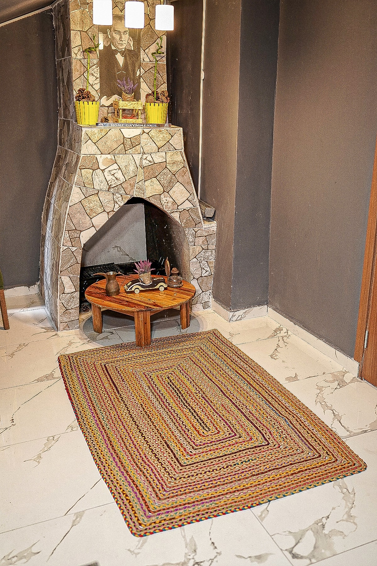 Jüt El Örgüsü Hasır Renkli Otantik Kilim