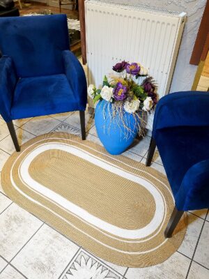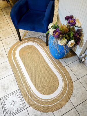 Jüt Hasır Çerçeve Detaylı Şık Dekoratif Kilim Halı