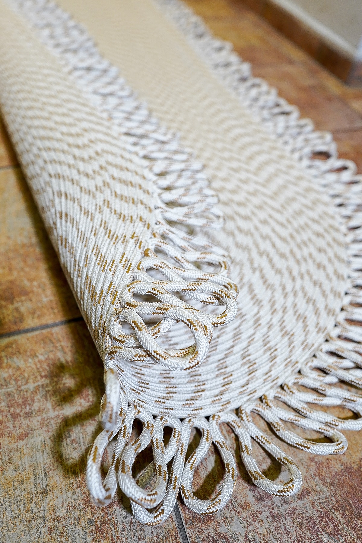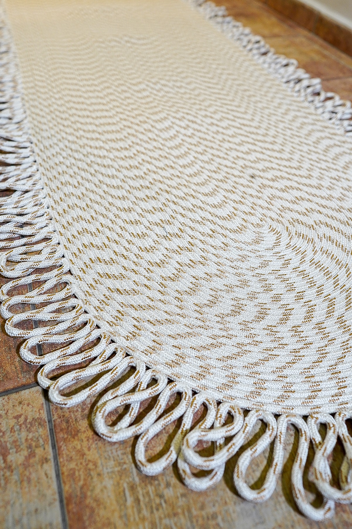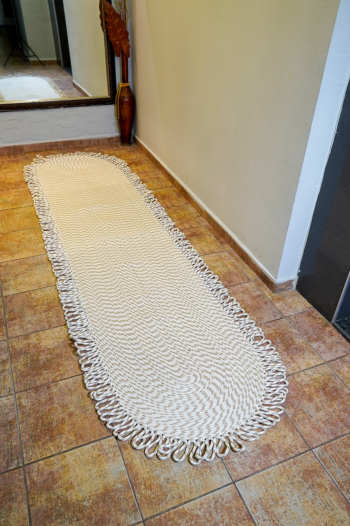 Ortalama 1.5 cm kalınlığındadır. Jüt, doğal renk varyasyonlarına sahip dayanıklı ve geri dönüştürülebilir bir materyaldir. Canlı ve solmaz renkleri ile evinizi canlandırır. Örgü kilimdir, doğal örgü tabanlıdır. İç ve dış mekan kullanımı için uygundur. Kolay temizlenir, dekoratif ve modern bir üründür. Halıyı elektrik süpürgesi ile düzenli olarak süpürünüz ve yönünü çeviriniz. Kurumuş lekeler zaman geçirmeden çıkartılmalıdır. Sıvı lekeleri ovalamayınız, kağıt havlu ile suyunu alıp hafif deterjan ve nemli bez ile siliniz. ;