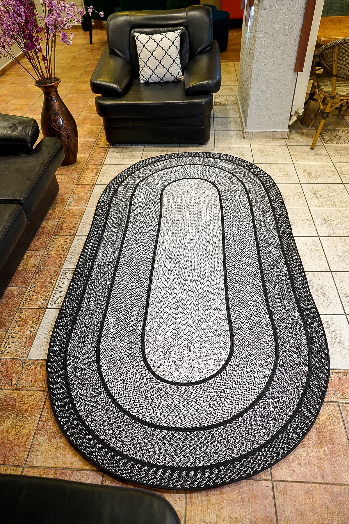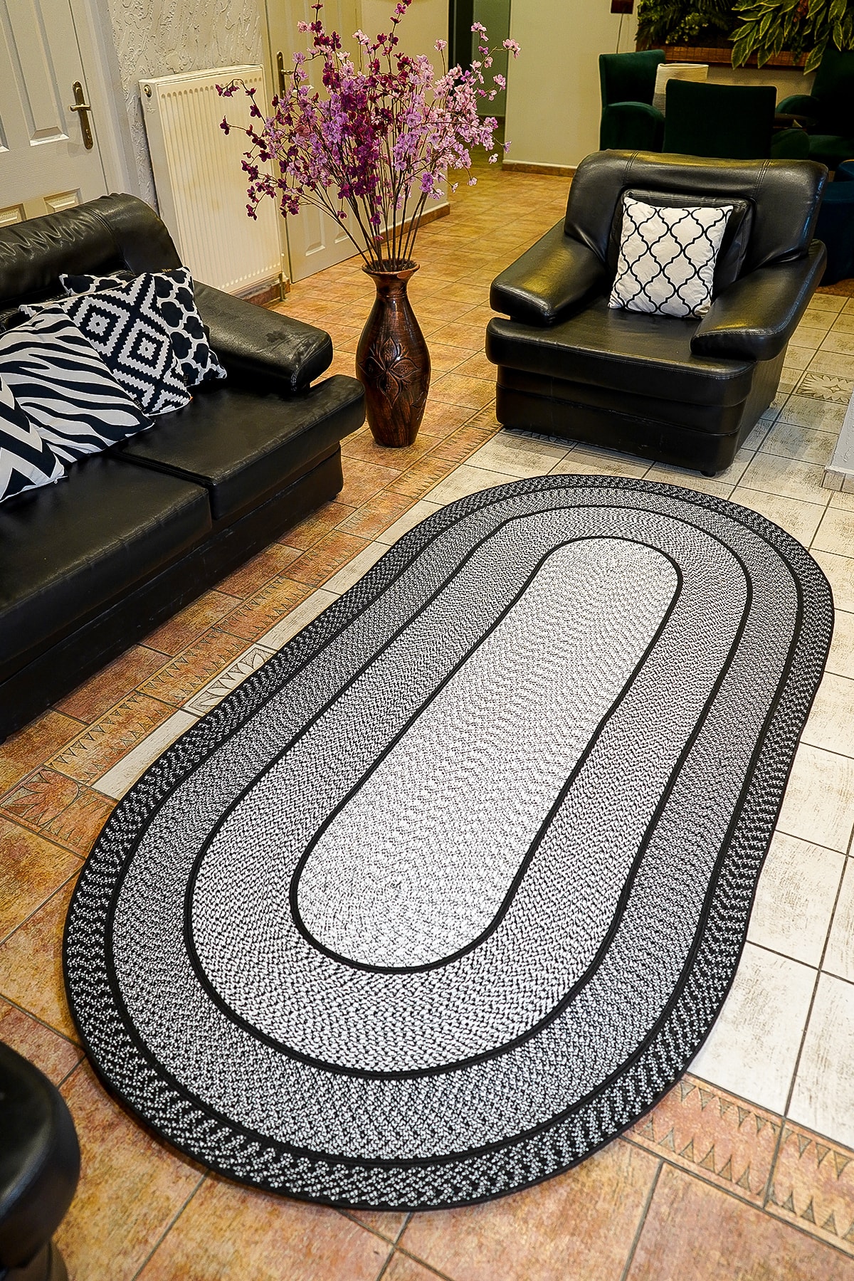 Jüt Hasır Sarmal Detaylı Şık Dekoratif Oval Kilim Halı Yolluk Paspas