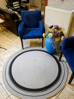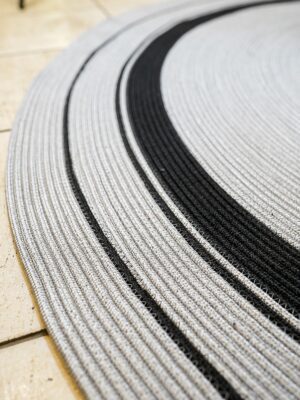 Jüt Hasır Şık Gri Kilim Siyah Çerçeveli Kilim Modern Yuvarlak Kilim Halı Yolluk Paspas