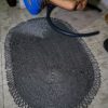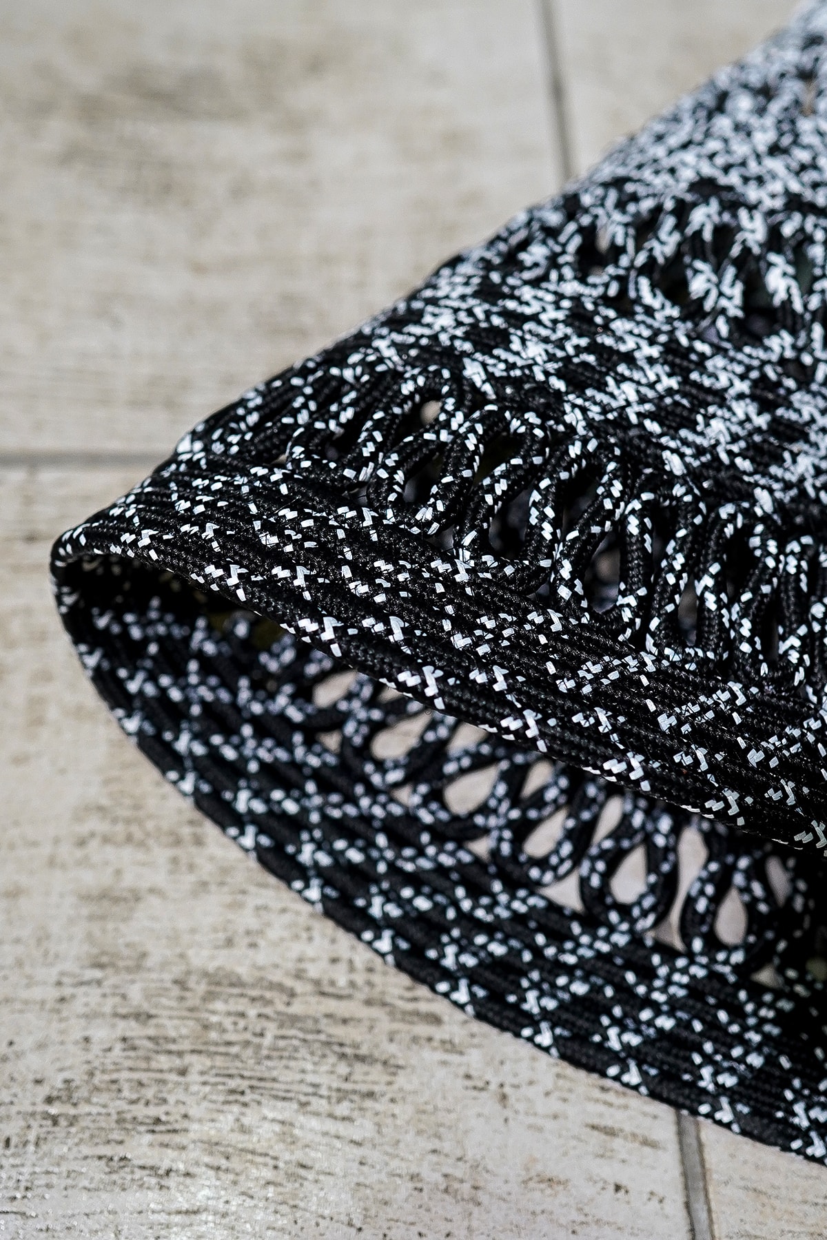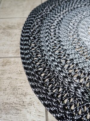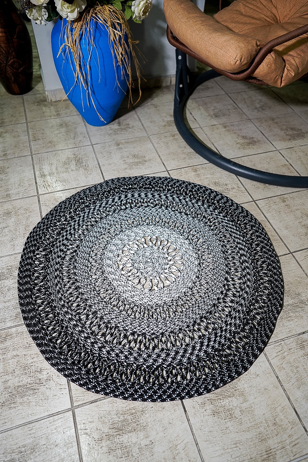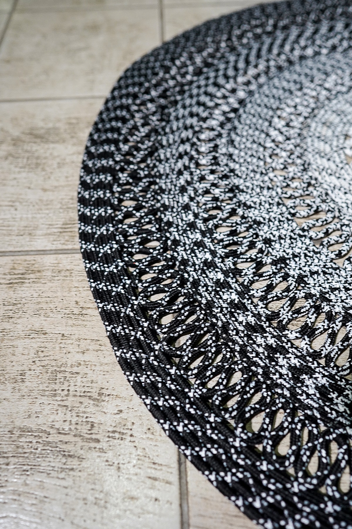 Jüt Hasır Siyah Beyaz Şık Detaylı Modern Yuvarlak Kilim Halı