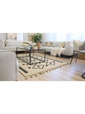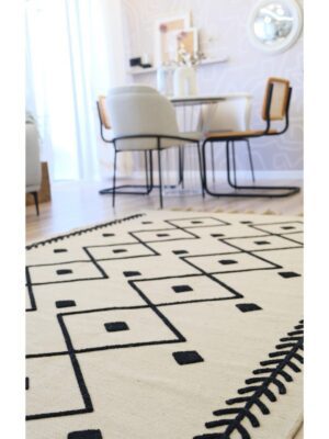 Doğal jüt materyali ile üretilmiş olup, dayanıklı ve uzun ömürlü kullanım sunar.; Siyah nakış detaylarıyla zenginleştirilmiş tasarımıyla şık ve modern bir görünüm sağlar.; Jüt tabanı sayesinde doğal bir dokunuşla zemininize uyum sağlar ve estetik bir bütünlük oluşturur.; Hem ev dekorasyonunda hem de ofis ortamlarında rahatlıkla kullanılabilir, mekanınıza sıcaklık ve stil katar.;