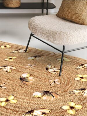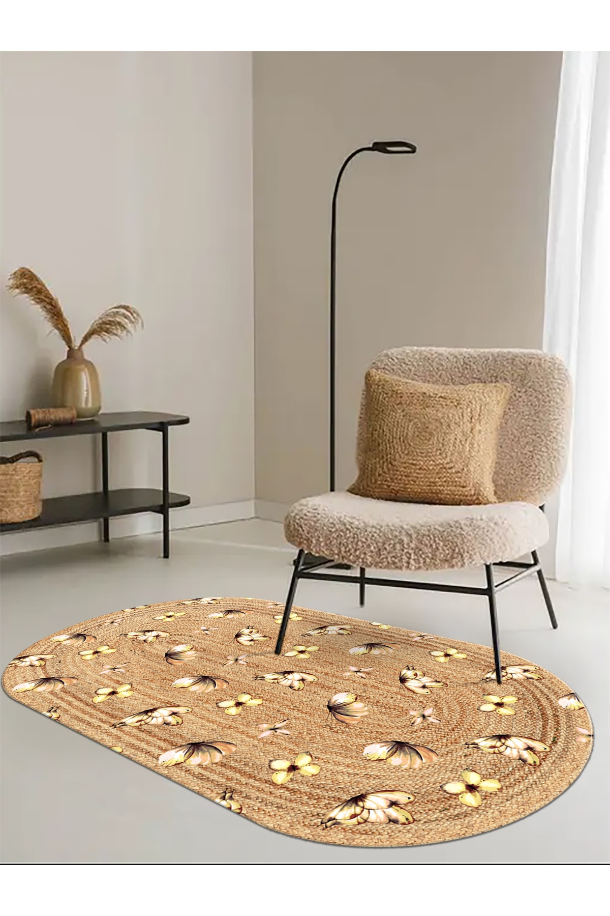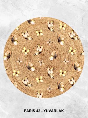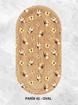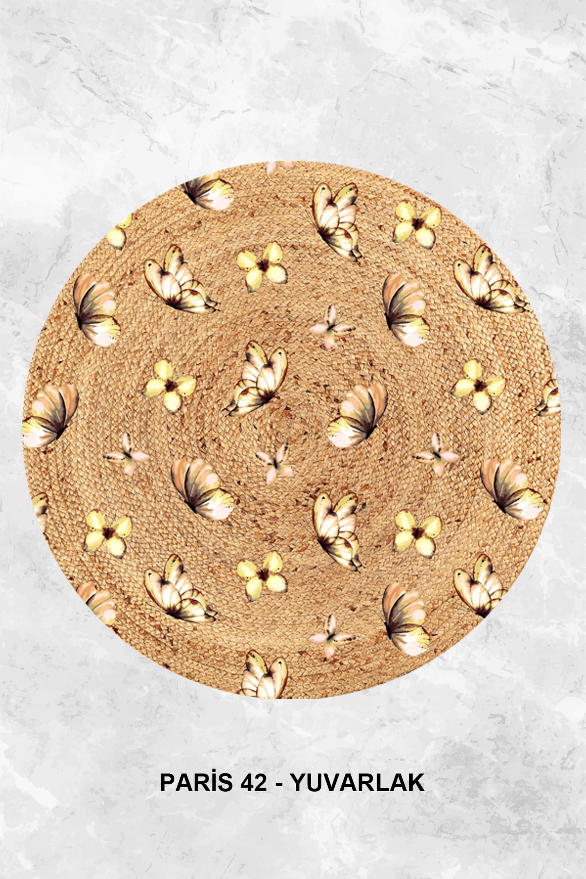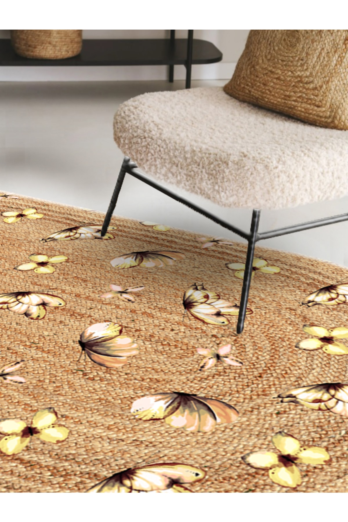 Kelebek Baskılı Jüt Görünümlü Dijital Baskılı Kilim, Çift Taraflı Örme Üzeri Baskı Jüt Baskılı Kilim