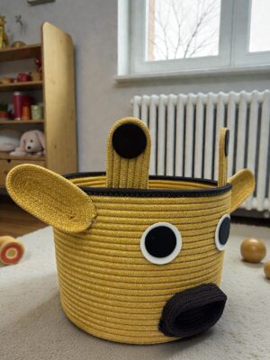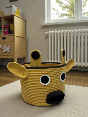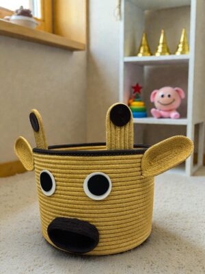 Kids İnek Figürlü Halat Sepet 26×20 cm Çocuk Odası Oyuncak ve Dekoratif Organizer