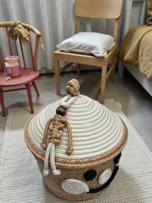25 x 25 cm boyutlarındaki bu sepet, çocuk odalarında düzenli bir görünüm sağlar ve oyuncakların kolayca toplanmasına yardımcı olur.; -Çocukların odalarında sıkça kullanılan oyuncakları ve aksesuarları rahatça saklamalarına olanak tanır.; – Pamuk materyal kullanımı sayesinde yumuşak dokusuyla çocukların hassas ciltlerine zarar vermez ve güvenle kullanılabilir.; – Tek parça halinde gelen bu ürün, montaj gerektirmez ve hemen kullanıma hazır bir şekilde teslim edilir.; – Türkiye’de üretilen bu ürün, yerel kaynaklardan elde edilen malzemelerle desteklenerek sürdürülebilir bir seçenek sunar.;