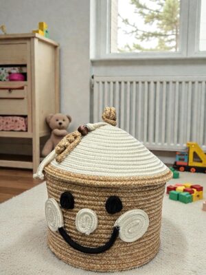 Kids Palyaço Kardan Adam Figürlü Charmlı Halat Sepet 25×25cm– Oyuncak Saklama&Çocuk Odası Organizeri