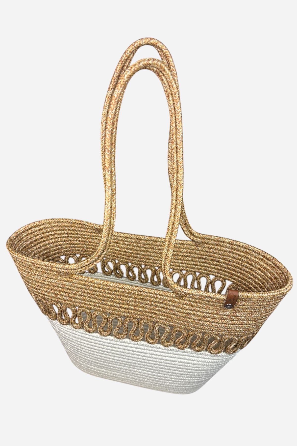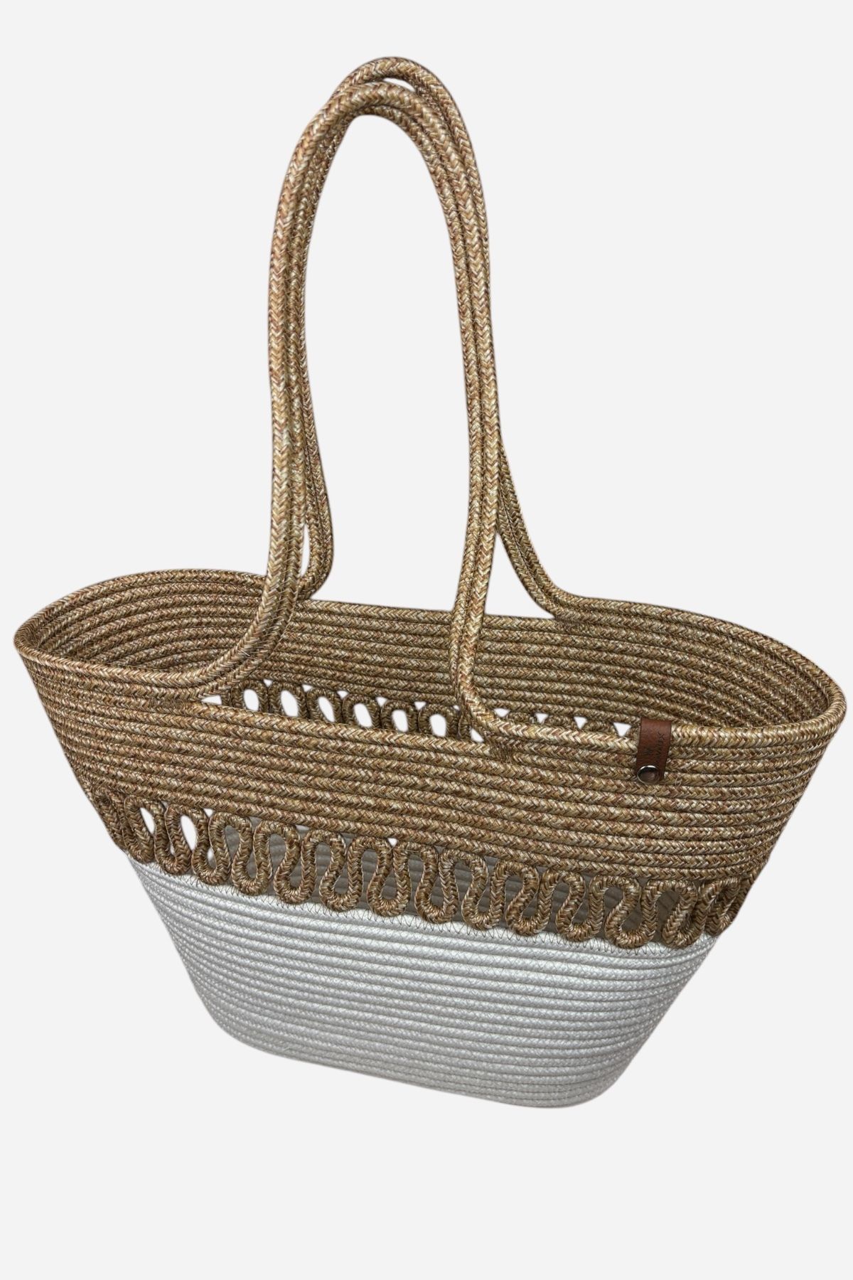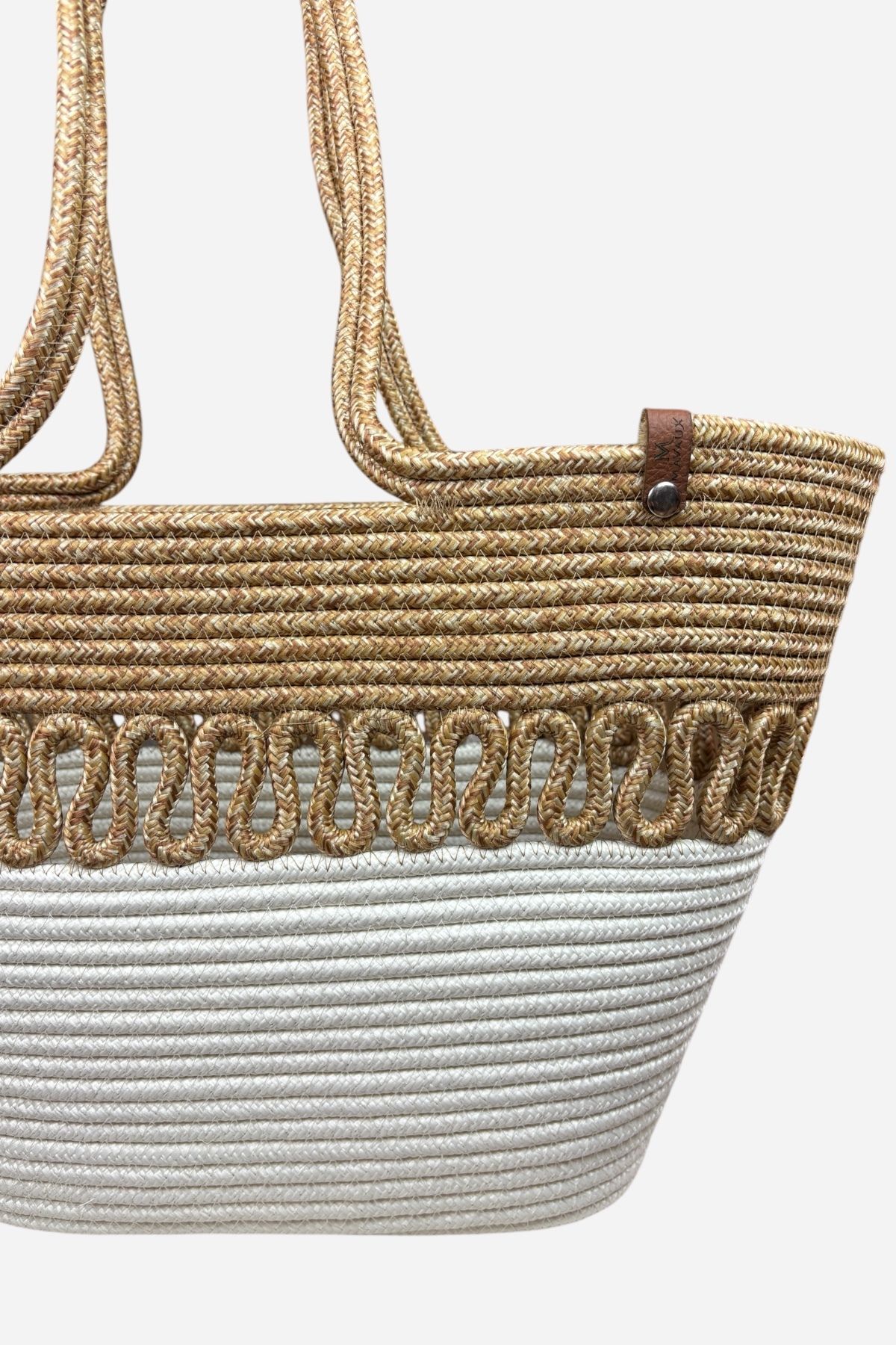 Hasır Jüt Kadın Omuz Çantası, %100 El Yapımı, Pamuk, Vegan, Jüt Hasır Plaj Çantası