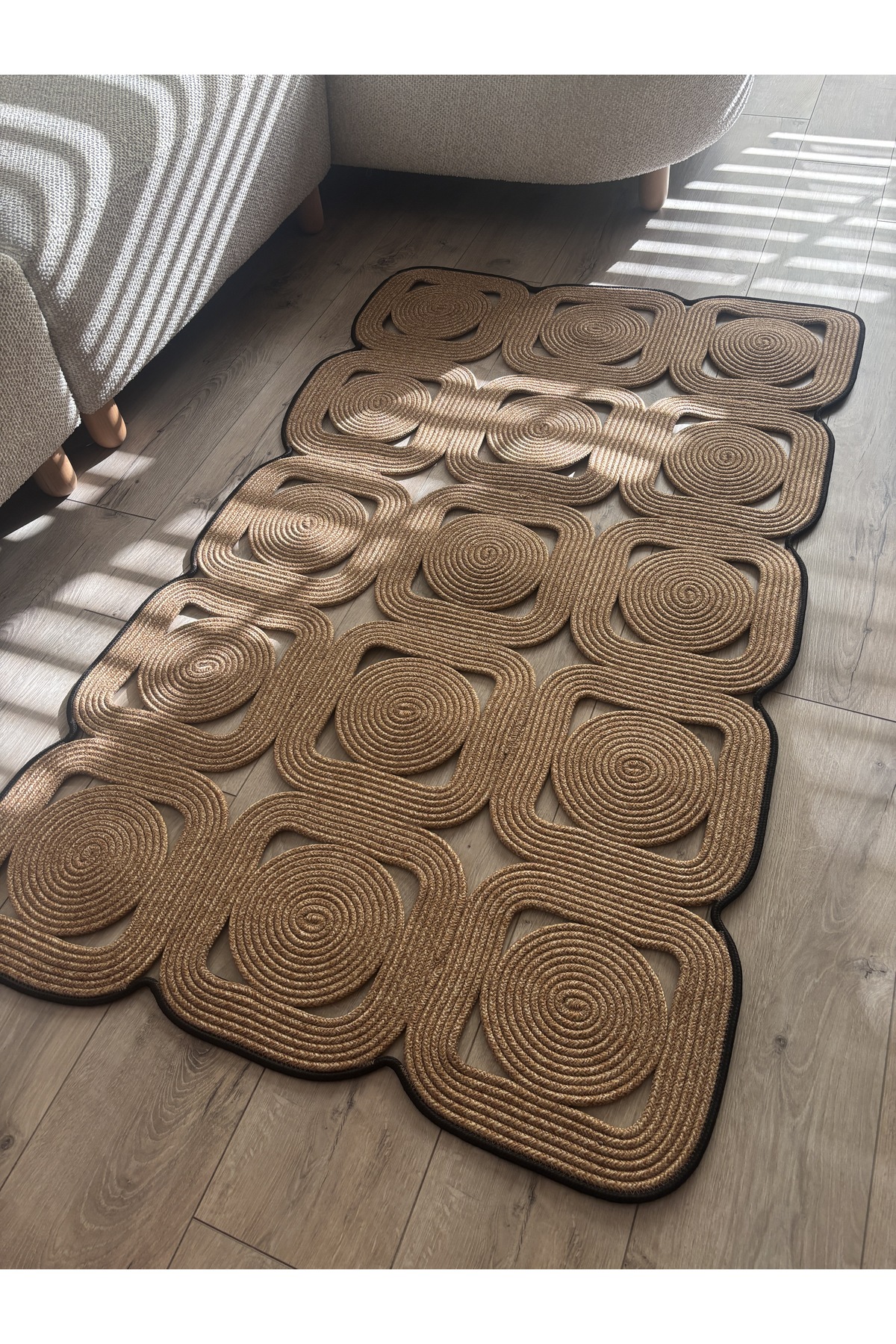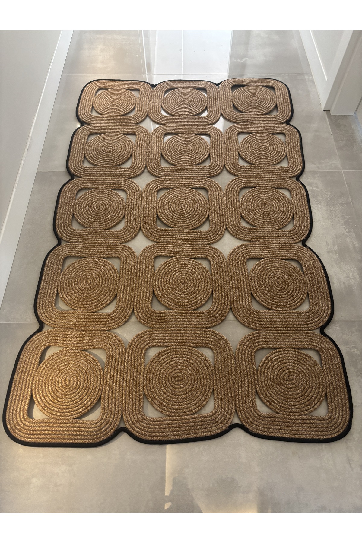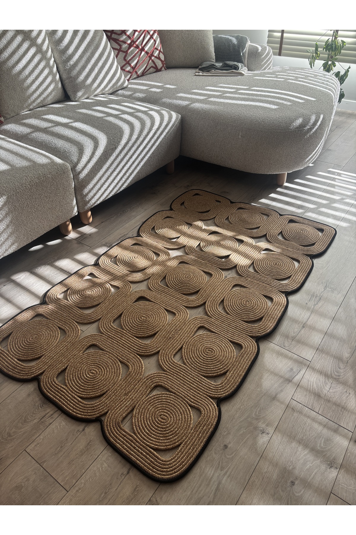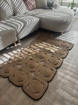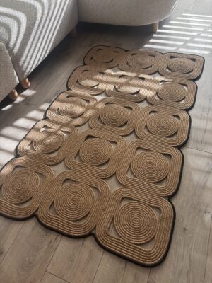 El işçiliğiyle üretilen Mavaux Doğal Hasır Halat Kilim, kare ve dikdörtgen formda modern ve bohem tarzı birleştirerek yaşam alanlarına estetik bir dokunuş katar.; %100 doğal jüt halattan üretilmiştir ve Type 3 yıkama talimatına uygun şekilde hazırlanmıştır.; Dayanıklı yapısı sayesinde uzun ömürlü kullanım sunar.; Antre, yatak odası, salon ve banyo gibi tüm yaşam alanlarında dekoratif bir tamamlayıcı olarak kullanılabilir.; Yalnızca soğuk suda (maks.; 30°C) elde yıkayınız, ağartıcı veya kimyasal temizlik maddeleri kullanmayınız, makinede sıkma veya yüksek devir yıkama yapmayınız.; Gölgelik ve havadar bir ortamda sererek kurutunuz, direkt güneş ışığına maruz bırakmayınız, ütü ve kuru temizleme uygulamayınız.; Doğallığın ve şıklığın buluştuğu bu özel kilim, her detayında el emeği ve zarafeti yansıtır.;
