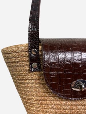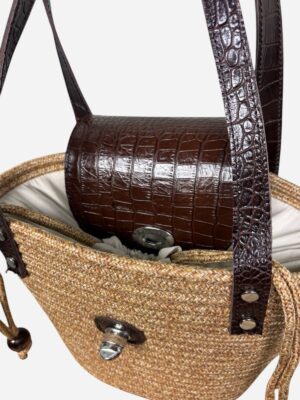 Lily Hakiki Deri Jüt Hasır Görünümlü İç Astarlı Omuz Çantası