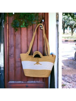 Luna Jüt Hasır Görünümlü Plaj Çantası Jüt Kol Çantası