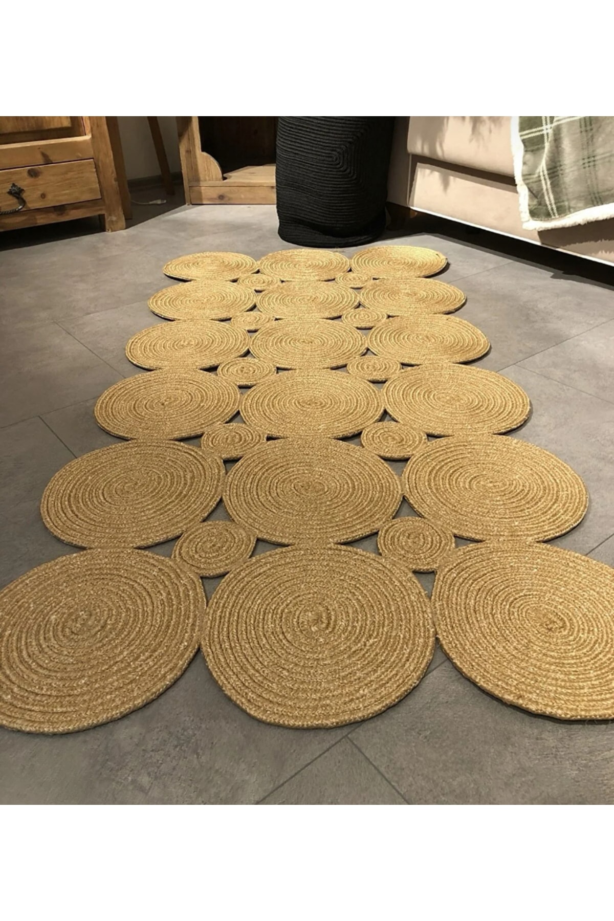 Maise Dikdörtgen Dekoratif Jüt Örme Naturel Hasır Halı Kilim Yolluk