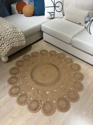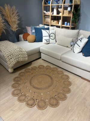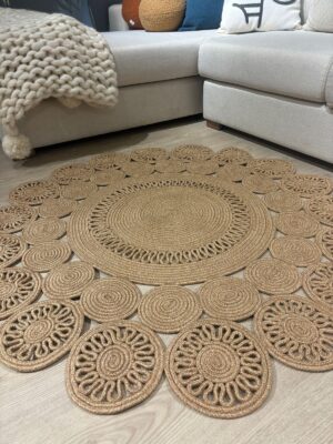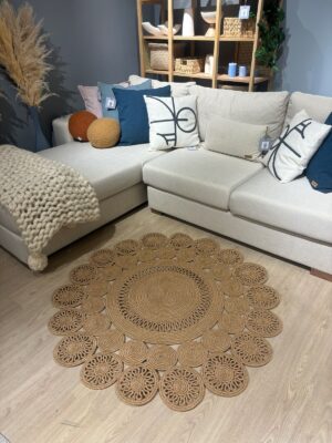 Leo Trio Yuvarlak Jüt Hasır Kilim –Doğal, El İşçiliği Dekoratif Halı Modeli Sofistike ve Şık Tasarım