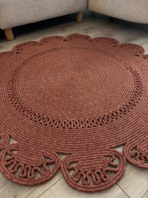 – Jüt materyali sayesinde doğal ve organik bir görünüm kazandırırken, geometrik deseniyle modern ve şık bir stil sunar.