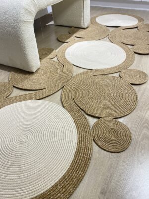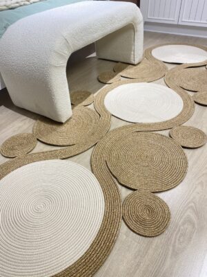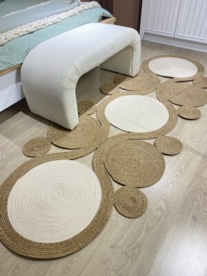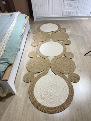 Bu Ürünümüz çok özel bir üründür. Ortalama bir ürünün imalat süresi 2 gün sürer. Evinize şıklık katar, ; A kalite hammaddeden üretilmiştir. ; Tamamen vegan doğal bir üründür. ; Ürün Özellikleri Ortalama 1.5 cm kalınlığındadır.Jüt, doğal renk varyasyonlarına sahip dayanıklı ve geri dönüştürülebilir bir materyaldir. ; Canlı ve solmaz renkleri ile evinizi canlandırır. ; Örgü kilimdir, doğal örgü tabanlıdır. ; İç ve dış mekan kullanımı için uygundur. ;