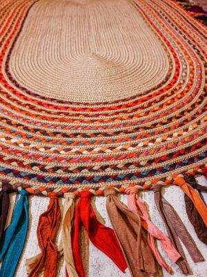 Milda Jüt Hasırlı El Örgüsü Kilim Halı Hasır Oval Saçaklı