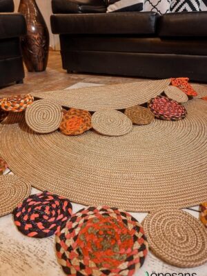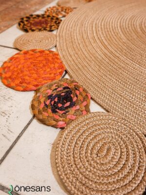 Milda Jüt Hasırlı El Örgüsü Kilim Halı Hasır Yuvarlak Şekilli
