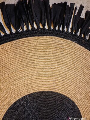 Milda Jüt Hasırlı El Örgüsü Kilim Halı Hasır Yuvarlak Siyah Bej