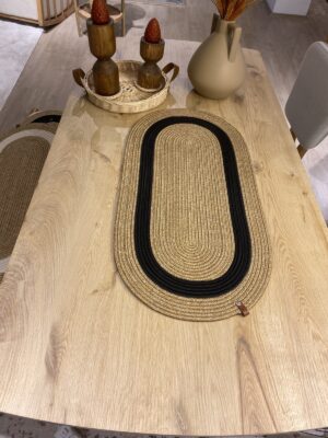 Jüt / Hasır, Amerikan Servis, Siyah Şeritli, 33cm 2-li Örgü Supla, Sunum Takımı./ Ev Hediyesi.