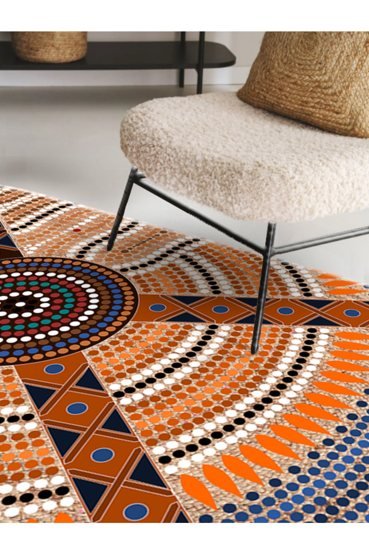 Mozaik Desen Baskılı Jüt Görünümlü Dijital Baskılı Kilim, Çift Taraflı Örme Üzeri Baskı Jüt Kilim