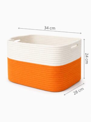 %60 polipropilen ve %40 pamuk karışımlı halattan üretilmiş bu dekoratif düzenleyici sepet, dayanıklı yapısı ve sade tasarımıyla evinizin her alanında şık bir kullanım sunar.; Formunu koruyan sık örgü yapısı sayesinde hem estetik hem de uzun ömürlüdür; kitap, battaniye, havlu, oyuncak, çamaşır veya günlük eşyalarınızı düzenlemek için idealdir.; Dikdörtgen formu raf, dolap içi ve masa üstü kullanımlara uyum sağlar.; Üst kısmı kırık beyaz krem tonlarında, alt kısmı farklı renk seçenekleriyle tasarlanmış olup her dekorasyon stiline kolayca uyum sağlar.; Ölçüleri 34 × 28 × 24 cm olan bu sepet, hem fonksiyonel hem de dekoratif bir düzenleme çözümüdür.;