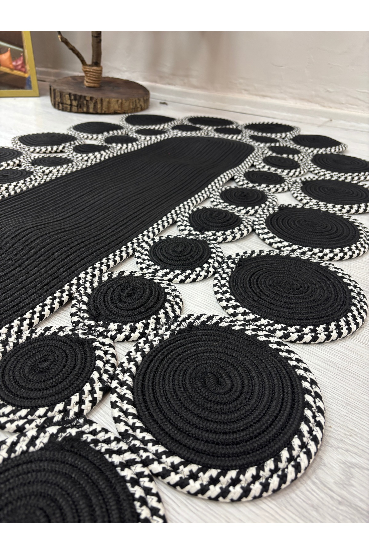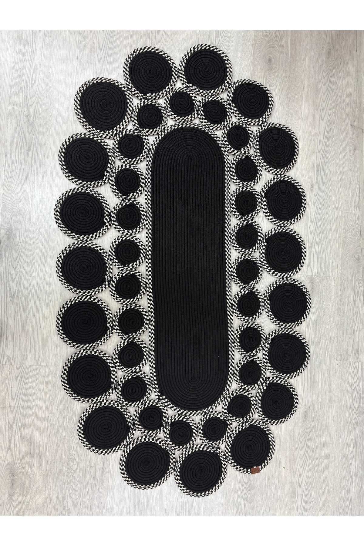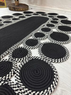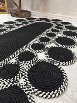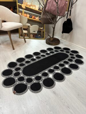 Noir Oval Papatya Şık Modern Jüt Hasır El Dokuma Dekoratif Yolluk Dairesel Tasarım