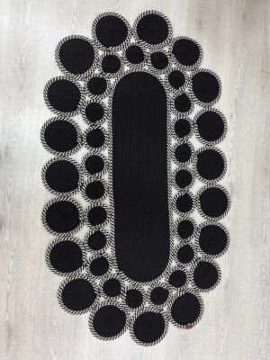 Noir Örgü Dekoratif Kilim, modern tasarımı ve özgün dairesel formu ile yaşam alanlarına şık ve güçlü bir karakter kazandırır. Dayanıklı örgü yapısı sayesinde formunu uzun süre korur, yumuşak dokusu ile konforlu kullanım sunar. Siyah tonun zamansız şıklığı ve doğal renk dengesi; salon, antre ve farklı yaşam alanlarında modern dekorasyonlara kolayca uyum sağlar. Hem tek başına hem de tamamlayıcı bir dekor unsuru olarak estetik bir görünüm oluşturur. Ortalama 1-1.5 cm kalınlığındadır , T37 Yıkama talimatına uygundur.