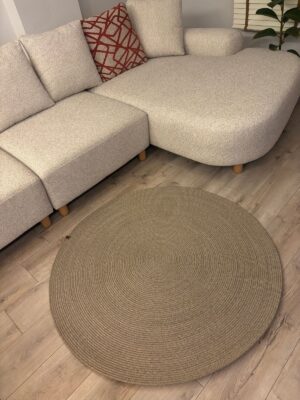 Taş Rengi Jüt Yuvarlak Hasır Görünümlü Klasik Halı Kilim