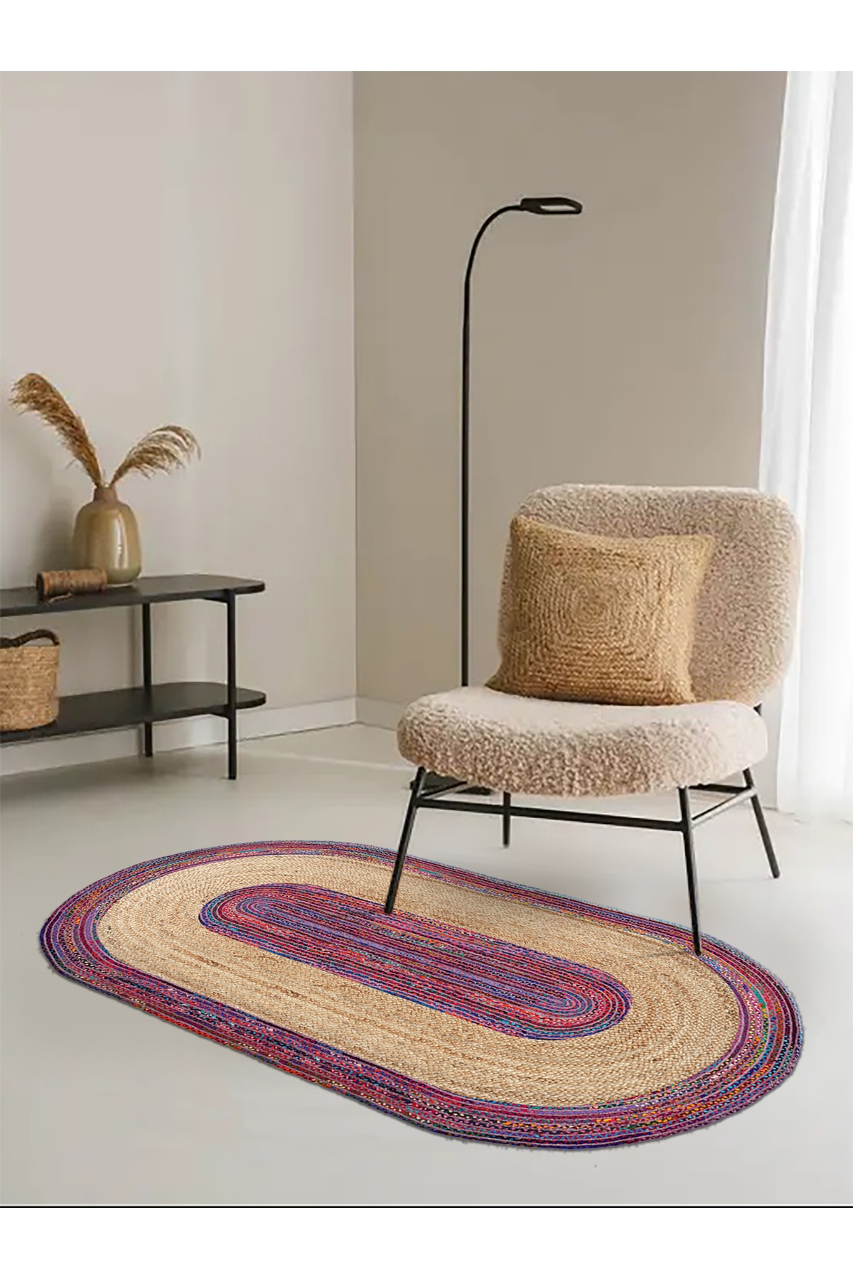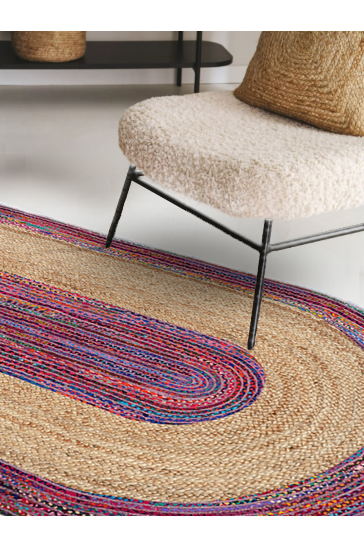 Özel Bej Baskılı Jüt Görünümlü Dijital Baskılı Kilim, Çift Taraflı Örme Üzeri Baskı Jüt Kilim