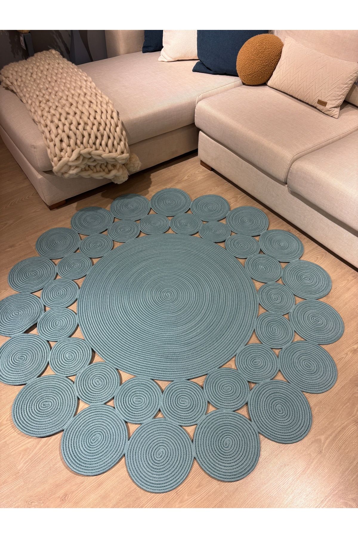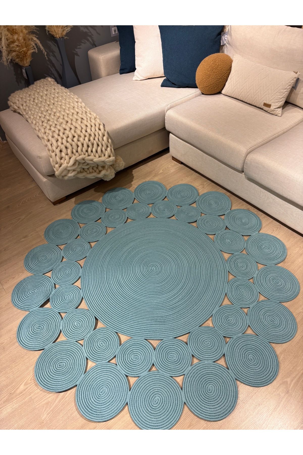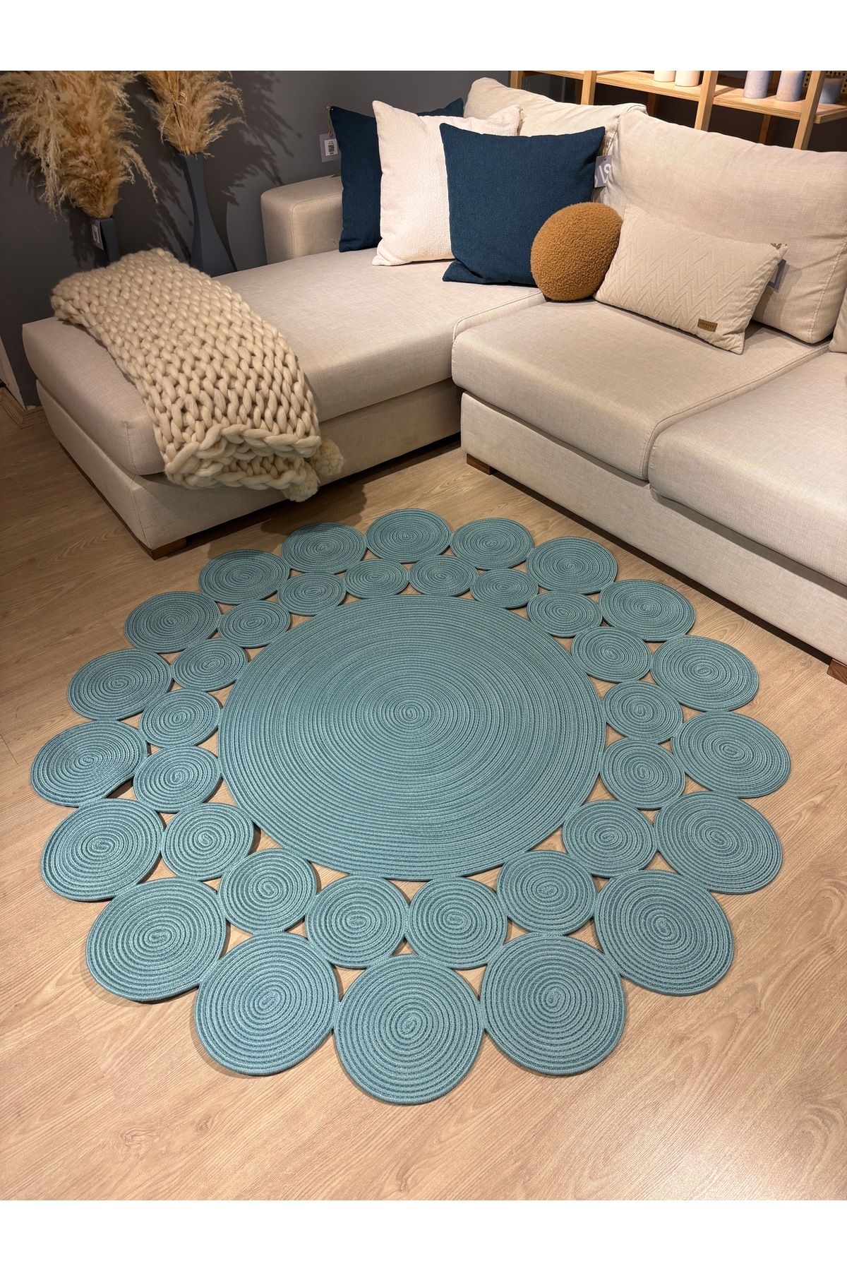 Ortalama 1.5 cm kalınlığındadır.; ; Jüt, doğal renk varyasyonlarına sahip dayanıklı ve geri dönüştürülebilir bir materyaldir.; ; Canlı ve solmaz renkleri ile evinizi canlandırır.; ; Örgü kilimdir, doğal örgü tabanlıdır.; ; İç ve dış mekan kullanımı için uygundur.; ; Ürünün ebatı saçaklar HARİÇ ebatıdır.; ; Kolay temizlenir, dekoratif ve modern bir üründür.; ; Halıyı elektrik süpürgesi ile düzenli olarak süpürünüz ve yönünü çeviriniz.; ; Kurumuş lekeler zaman geçirmeden çıkartılmalıdır.; ; Sıvı lekeleri ovalamayınız, kağıt havlu ile suyunu alıp hafif deterjan ve nemli bez ile siliniz.;