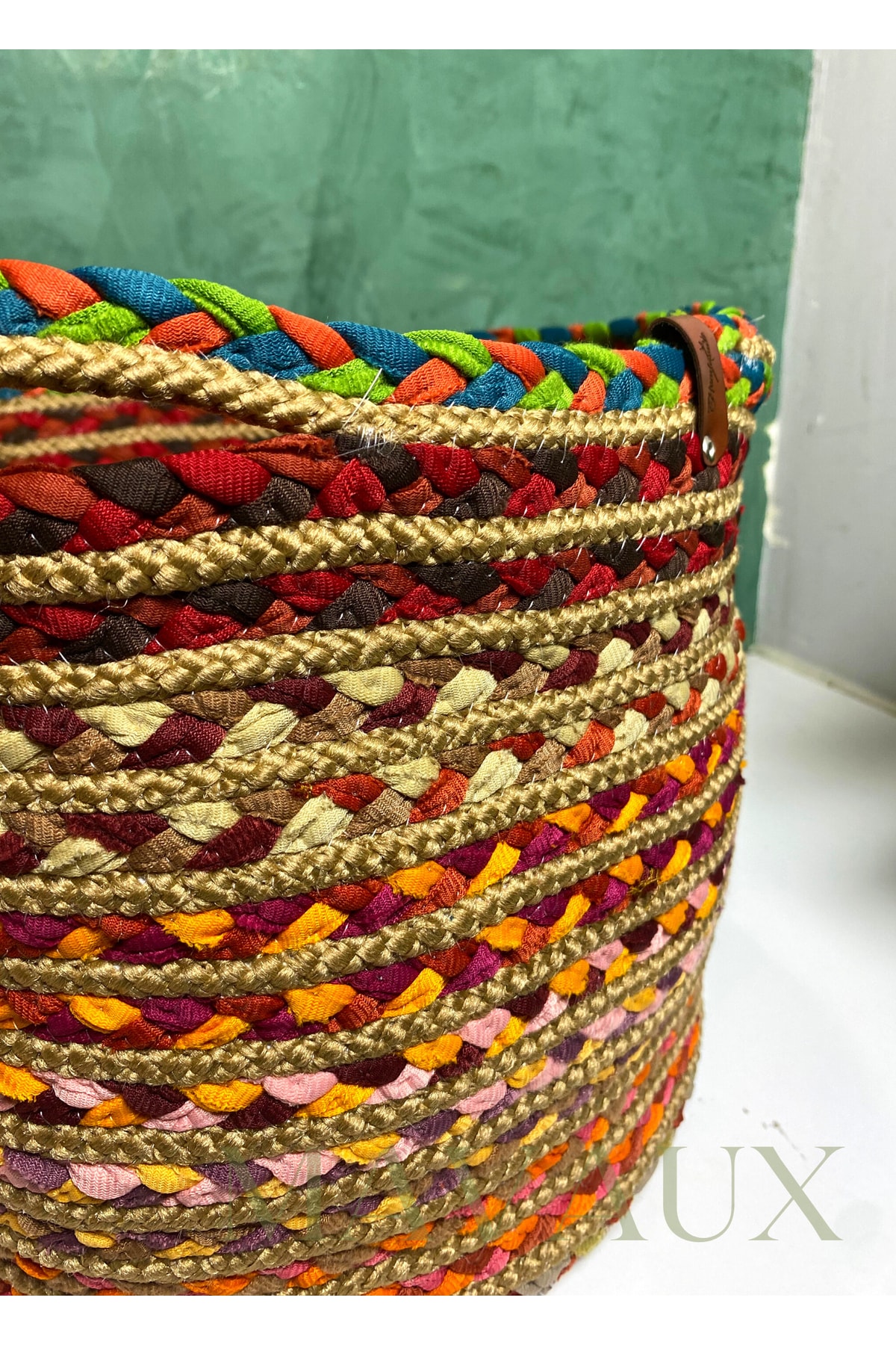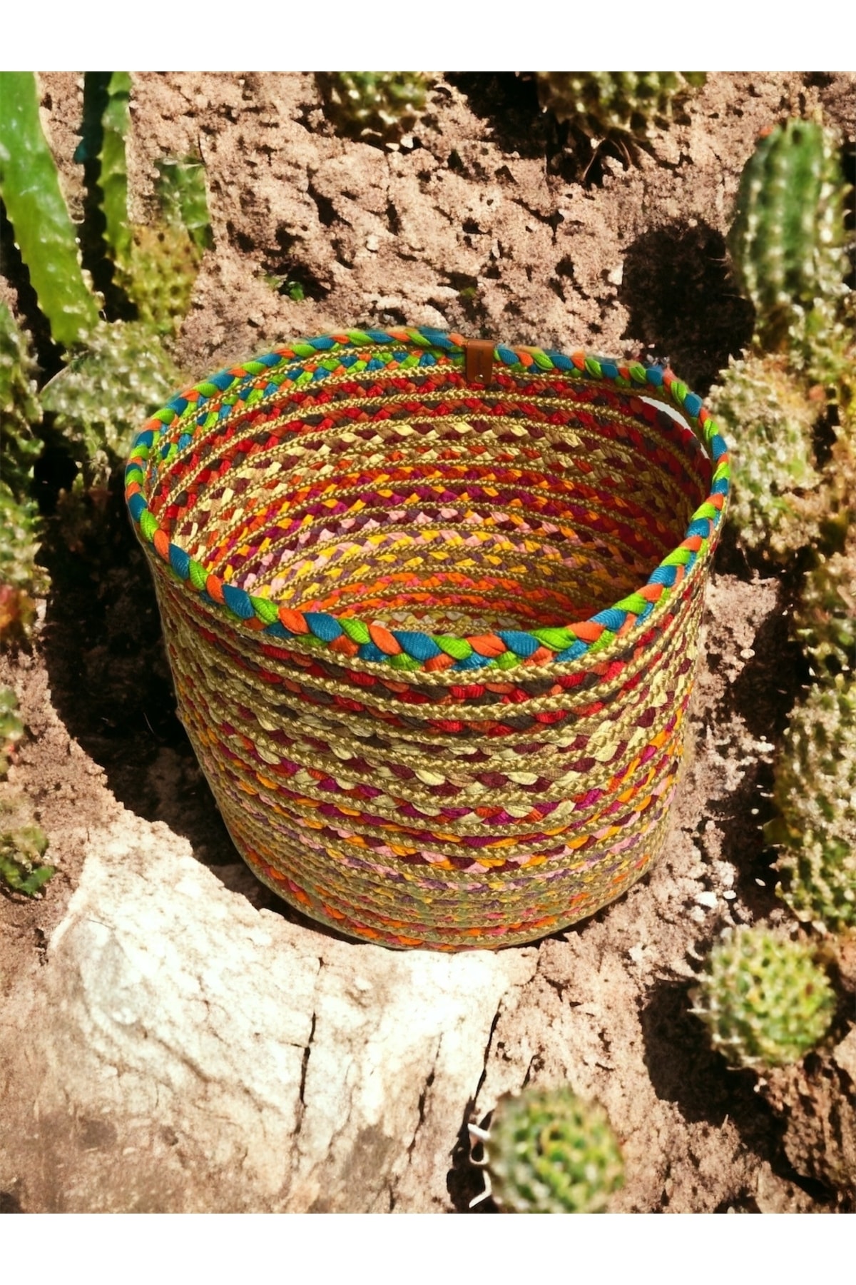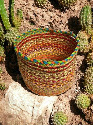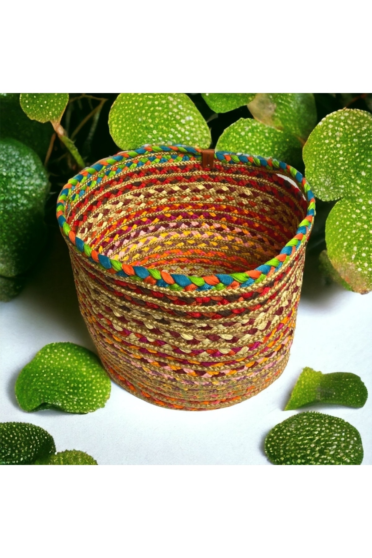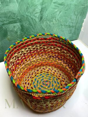 Renkli, Hasır Örme Sepet, Jüt Çamaşır, Oyuncak Toplama Sepeti