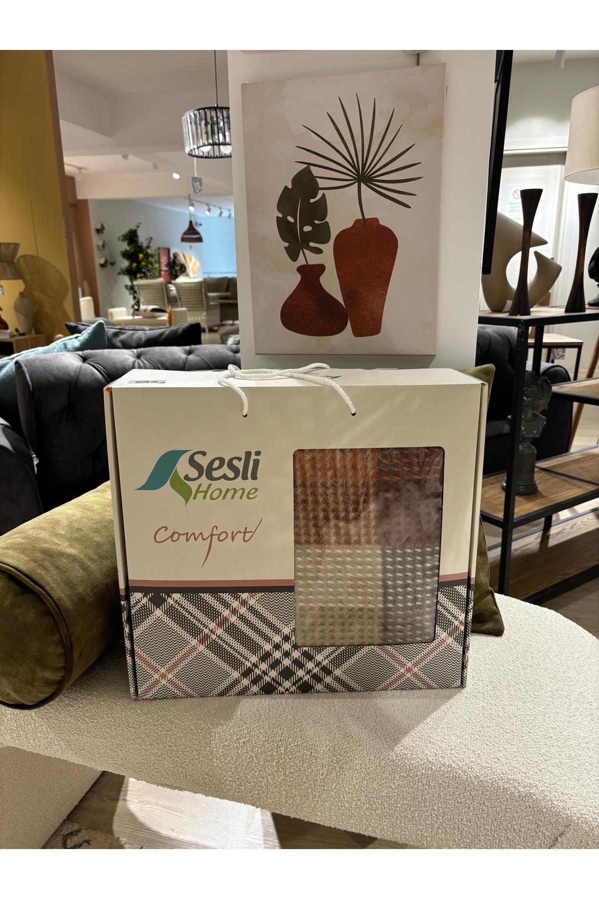 Sesli Comfort Serisi Battal Boy Pamuklu Kutulu Skoç Battaniye 200×220 1750gr