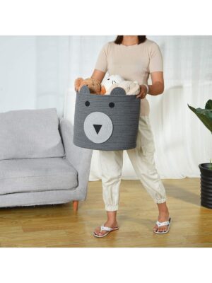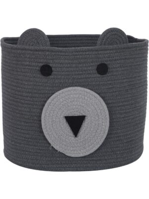 Sevimli Ayı Tasarımlı Pamuk Jüt Saklama Sepeti, Kulplu Oyuncak Saklama Kutusu, Dokuma Çamaşır Sepeti