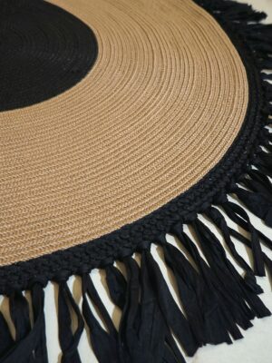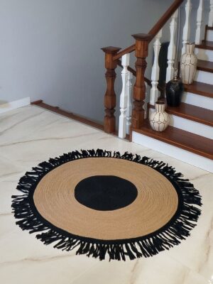 Siyah Saçaklı Jüt Hasır Görünümlü Kilim