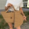 Soft Mini Jüt Hasır Portföy Clutch El Çantası Yazın Modası