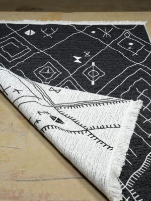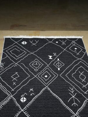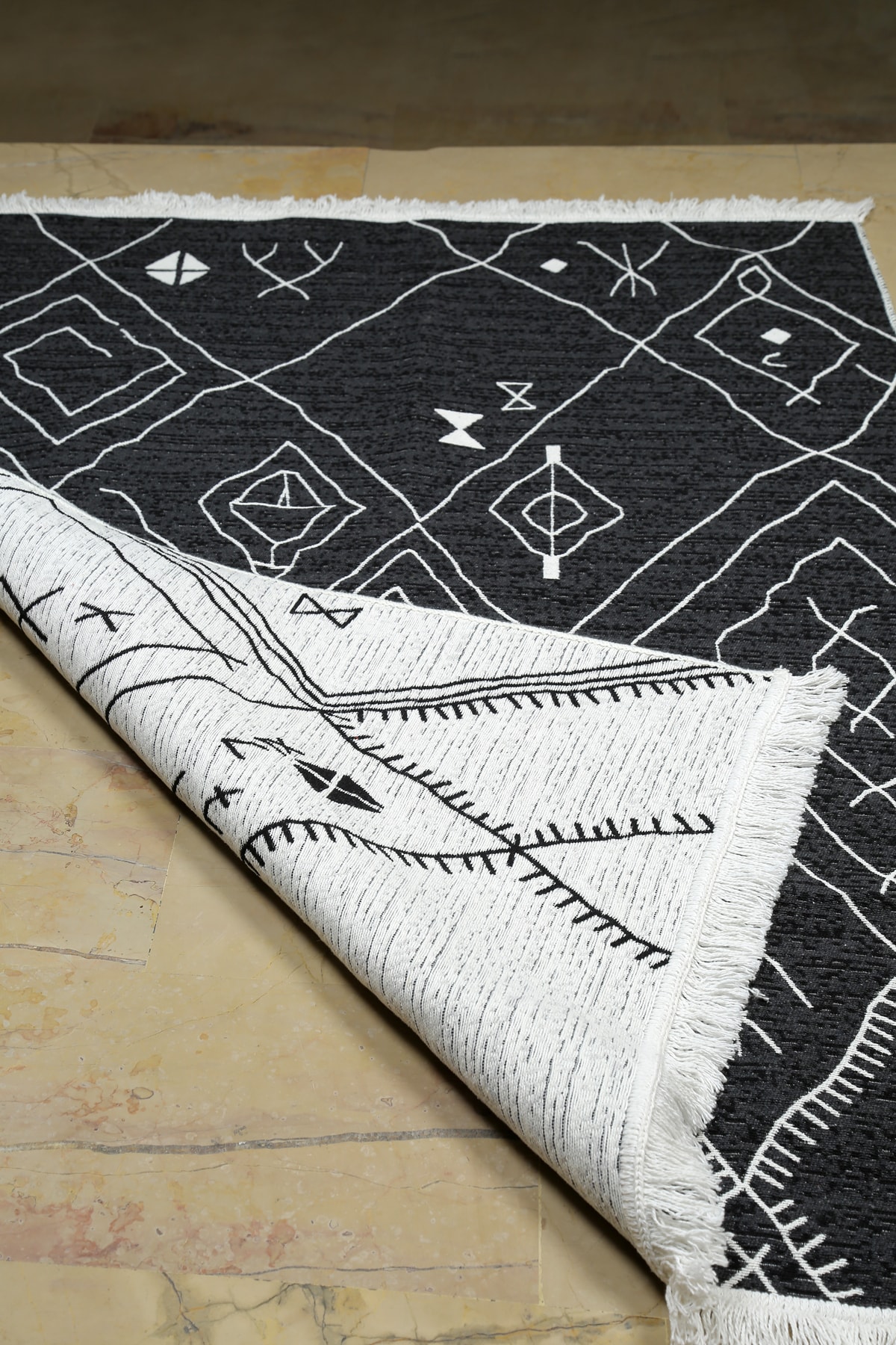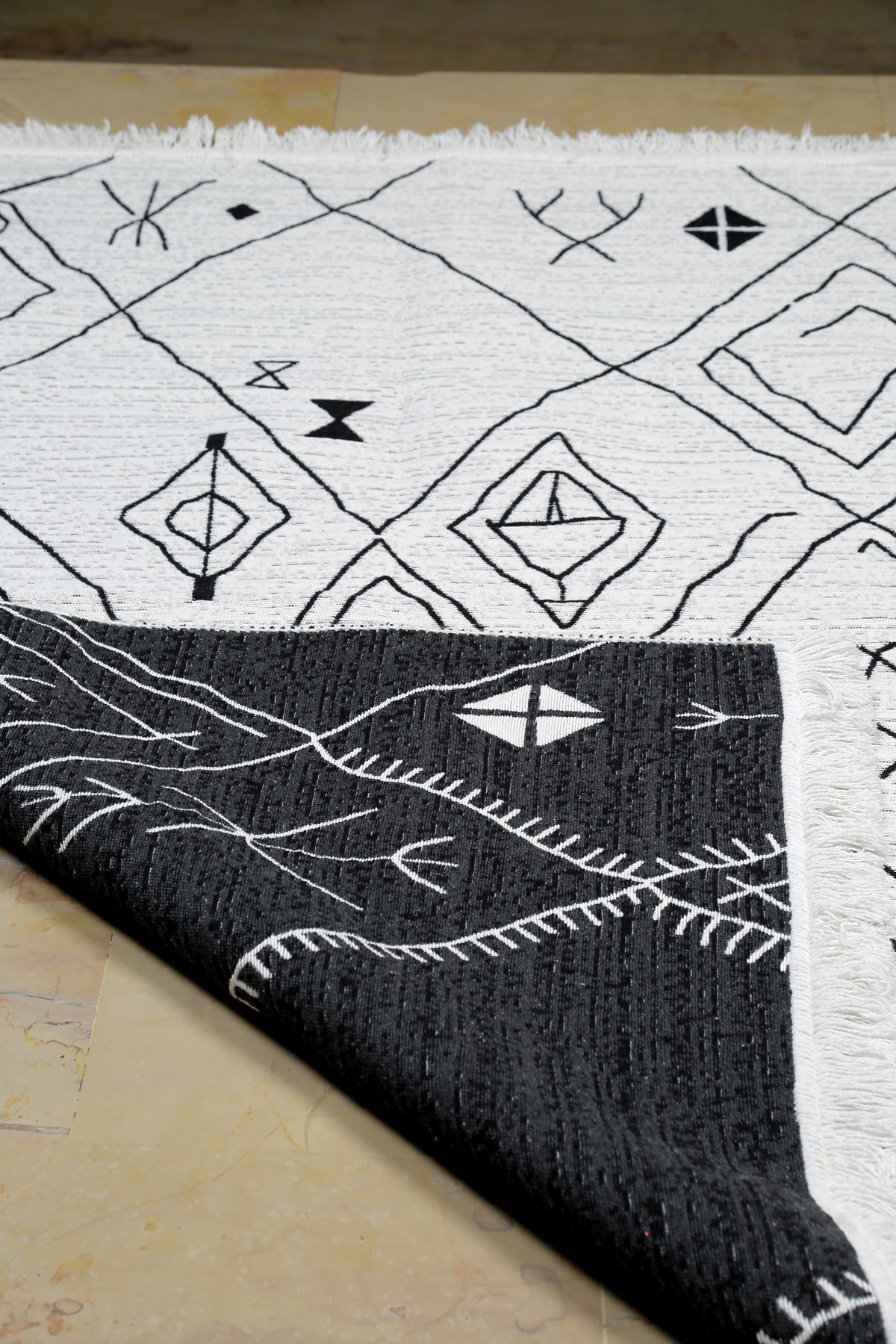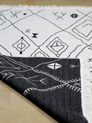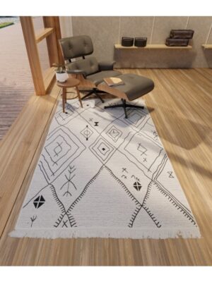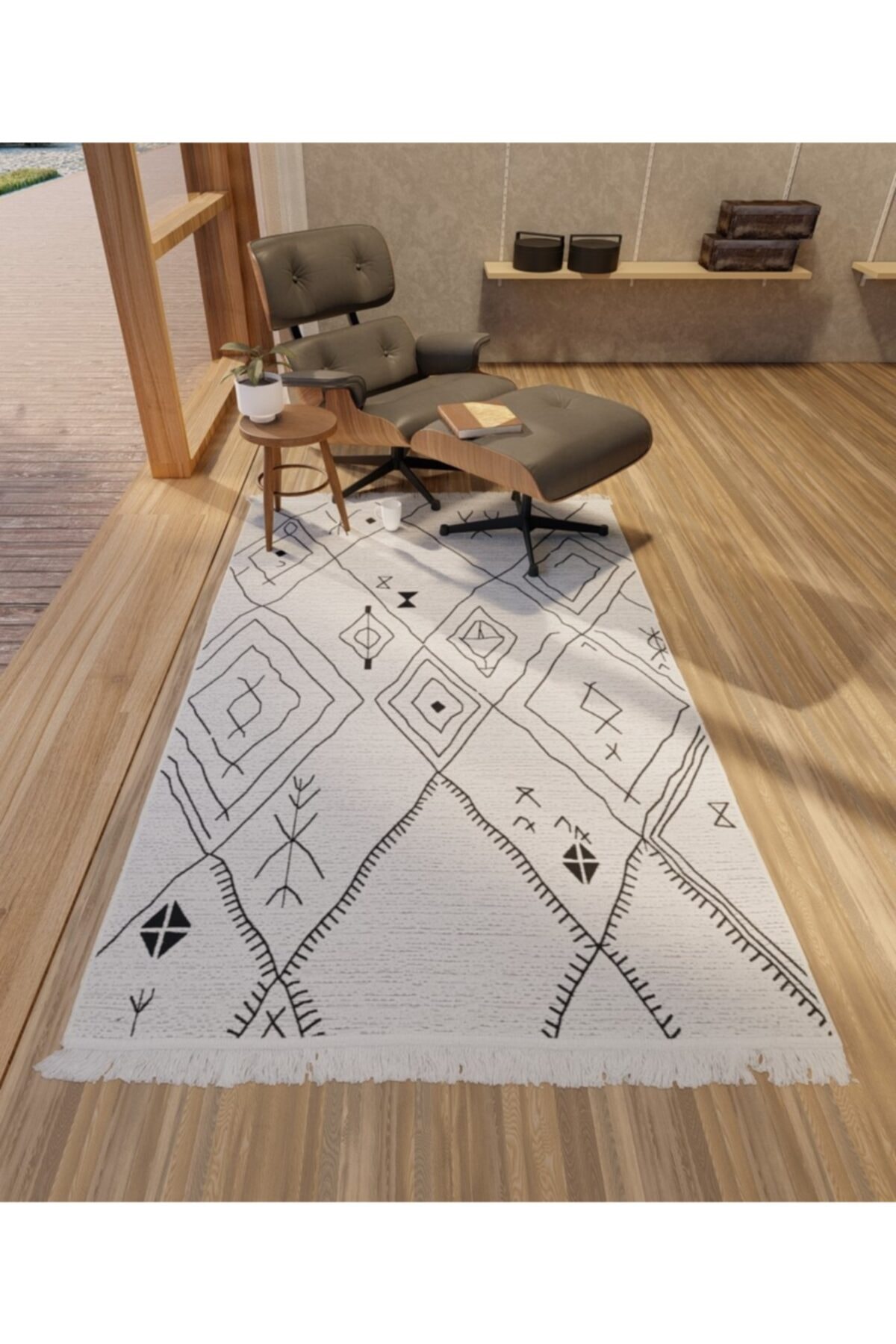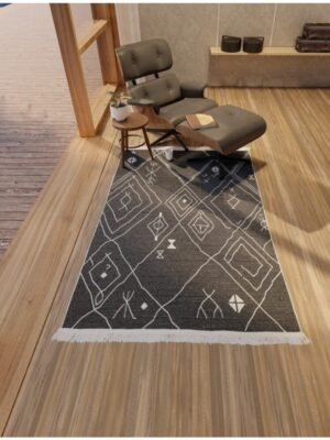 Taşyaran Serisi Çift Taraflı Saçaklı Vektörel Desenli Pamuklu Dokuma Kilim