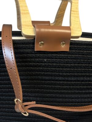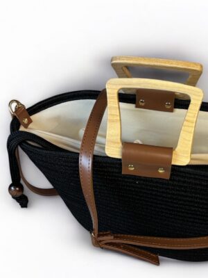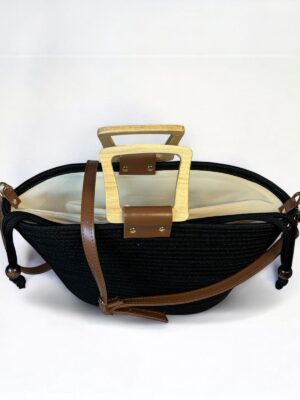 Woody Ahşap Saplı Deri Detaylı Jüt Hasır Görünümlü Iç Astarlı Vip Çanta